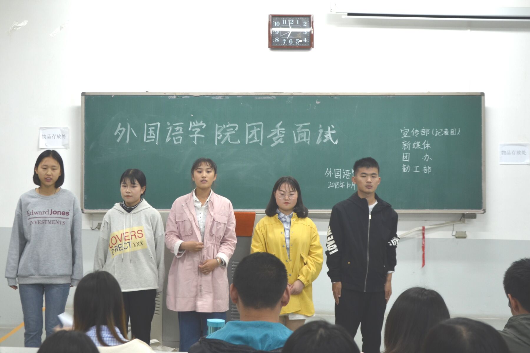 本网讯(审稿:王颖 供稿:饶芝玉)为壮大学生组织,给学生干部队伍输送新鲜血液,10月19日晚上七点,学院于龙子湖校区繁塔楼C208教室进行团委招新面试大会。院团委各部门部长及部门代表担任评委,学院2018级新生积极参加竞选。