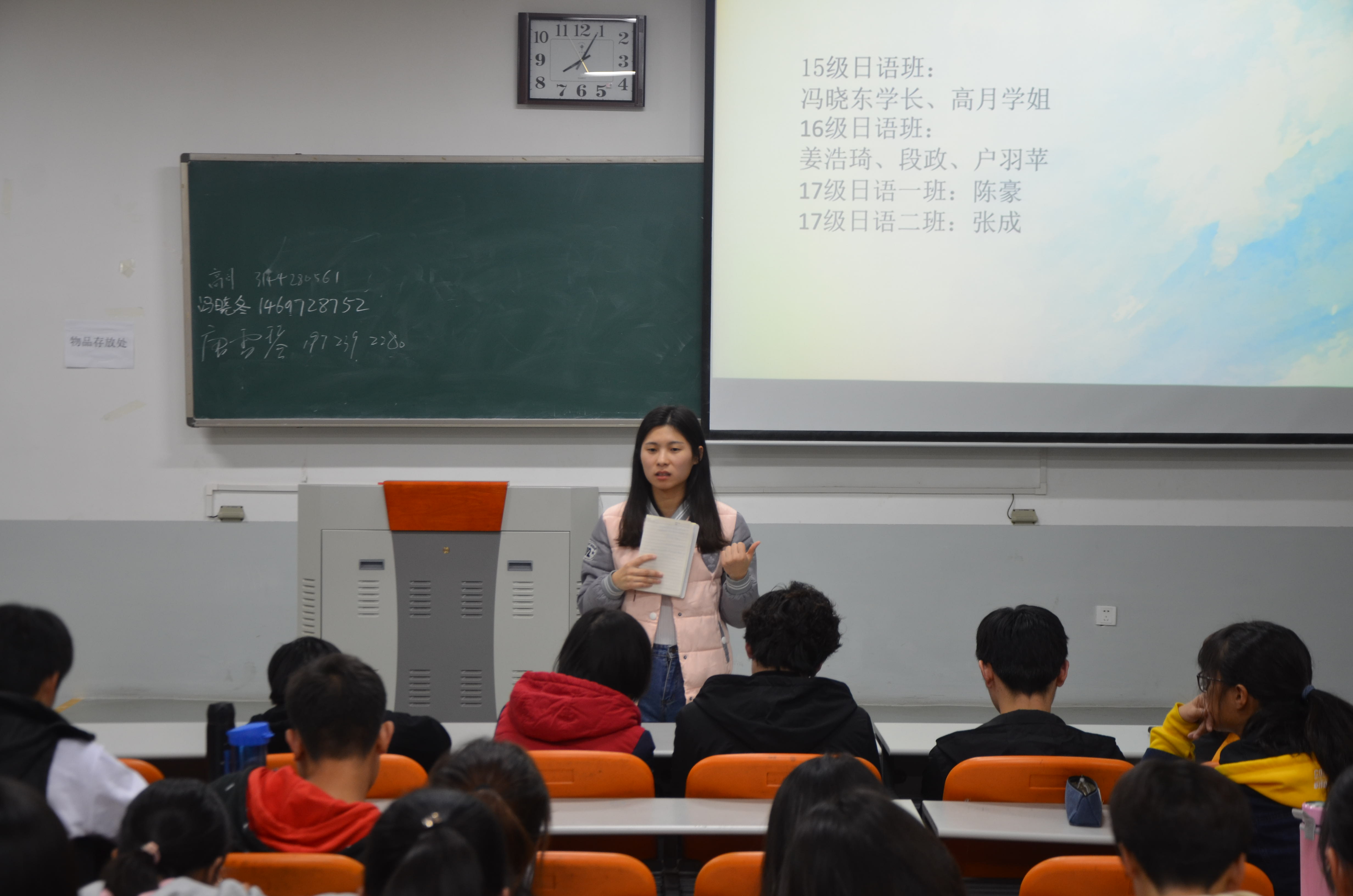 本网讯(审稿:王颖 供稿:陈晓寒)为激发日语系学生学习日语的积极性,增强学生学习能力,哔咔漫画 于11月15日晚7点在繁塔楼C402教室举办日语系N1、N2交流会。全体18级日语系学生参加本次交流会。