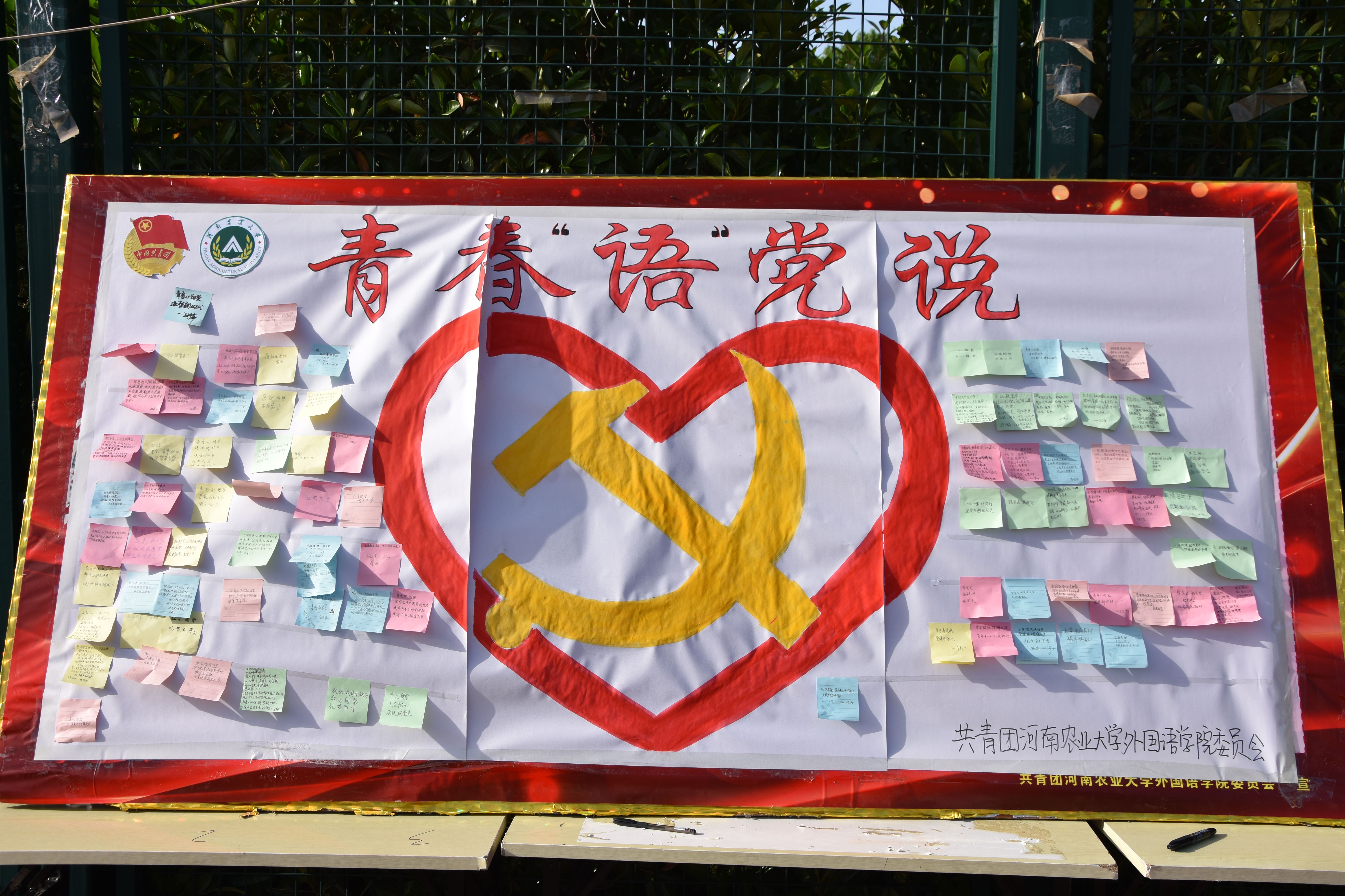 最后,青马班同学领唱,全体师生共同合唱了红歌《唱支山歌给党听》。高昂的歌声中,鲜红的国旗下,爱党爱国、奋发图强的情感在每位师生心中激荡。仪式结束后,各师生依次在“红心向党、礼赞百年”条幅上进行签名,向建党100周年献礼。