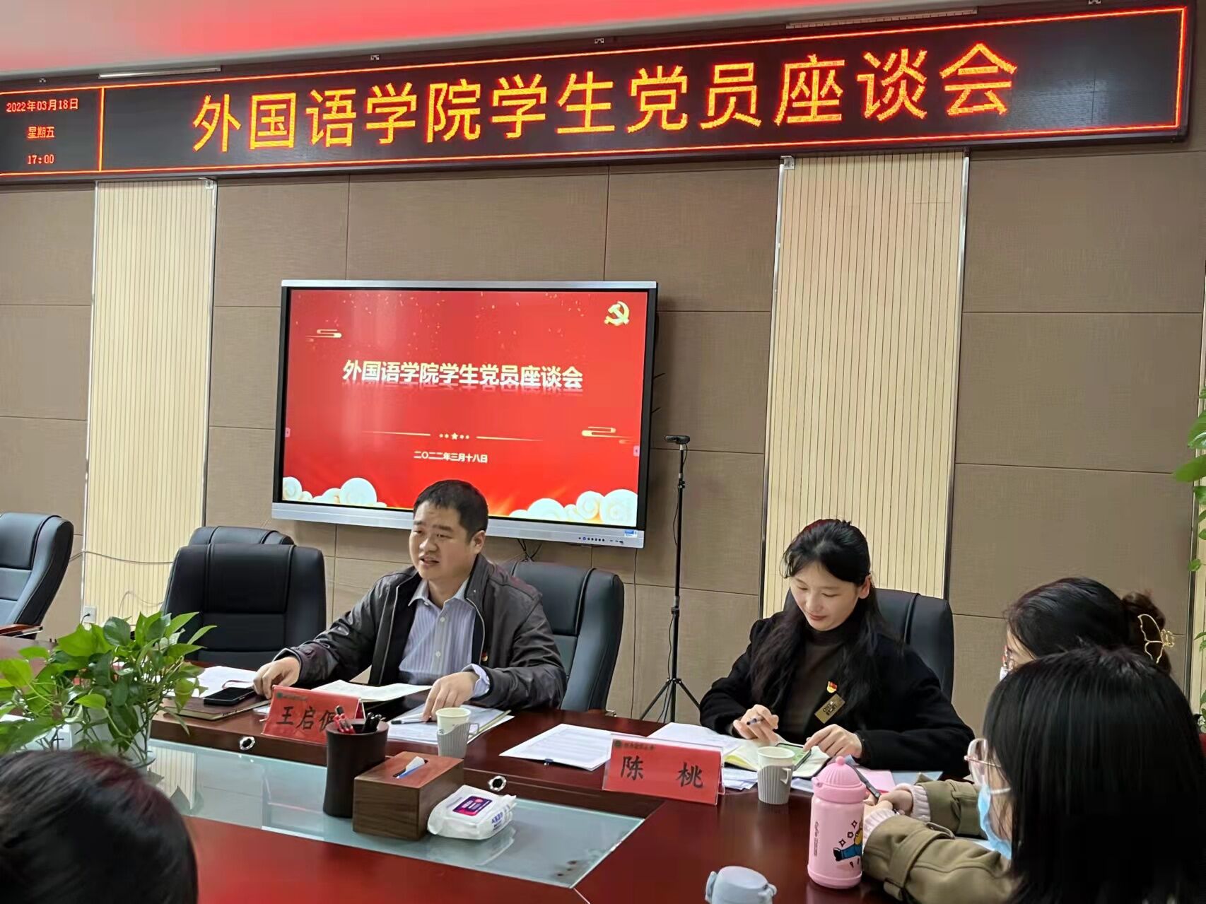 本网讯(审稿:王启佩 供稿:陈桃 黄湘)为进一步贯彻落实“三品”主题教育思想,发挥学生党员的“头雁作用”,切实解决学生的思想困惑和生活难题,3月18日下午,哔咔漫画 于龙子湖校区繁塔楼A320会议室召开了学生党员座谈会。会议由院党委副书记王启佩主持召开,院学生党员代表参加会议。