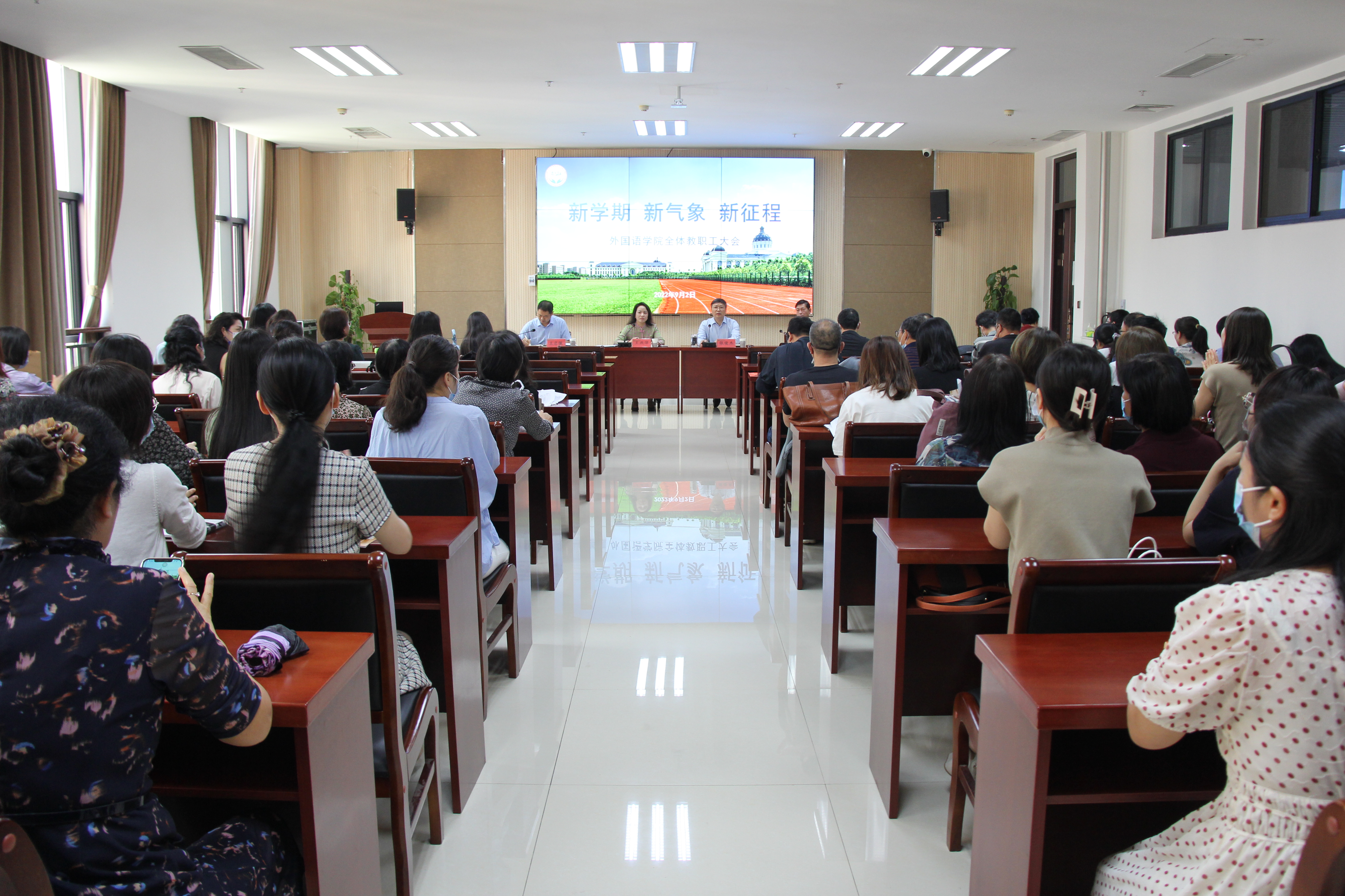会议要求全体教师进一步提高政治站位,增强大局意识、危机意识,新学期展现新作为,用更强的责任感和使命感,更清晰的目标,更扎实的工作作风,更高的标准来完成各项工作任务,以优异的成绩迎接党的二十大胜利召开。