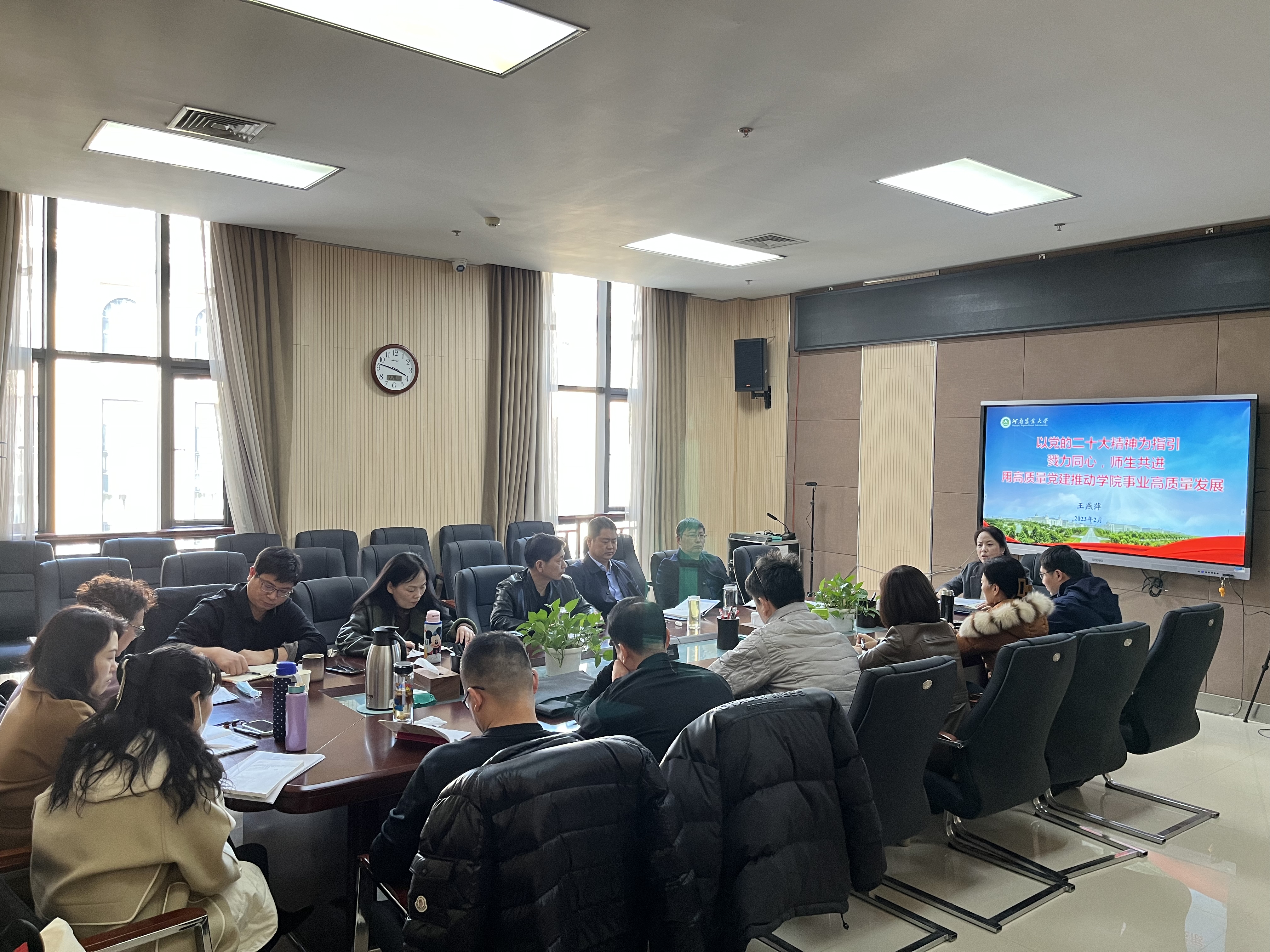 本网讯(审稿:王燕萍  供稿:吕品 )为深入学习贯彻宣传党的二十大精神,2月27日下午,学院召开学习党的二十大精神专题研讨会。院党政班子成员、中层干部等参加本次会议。
