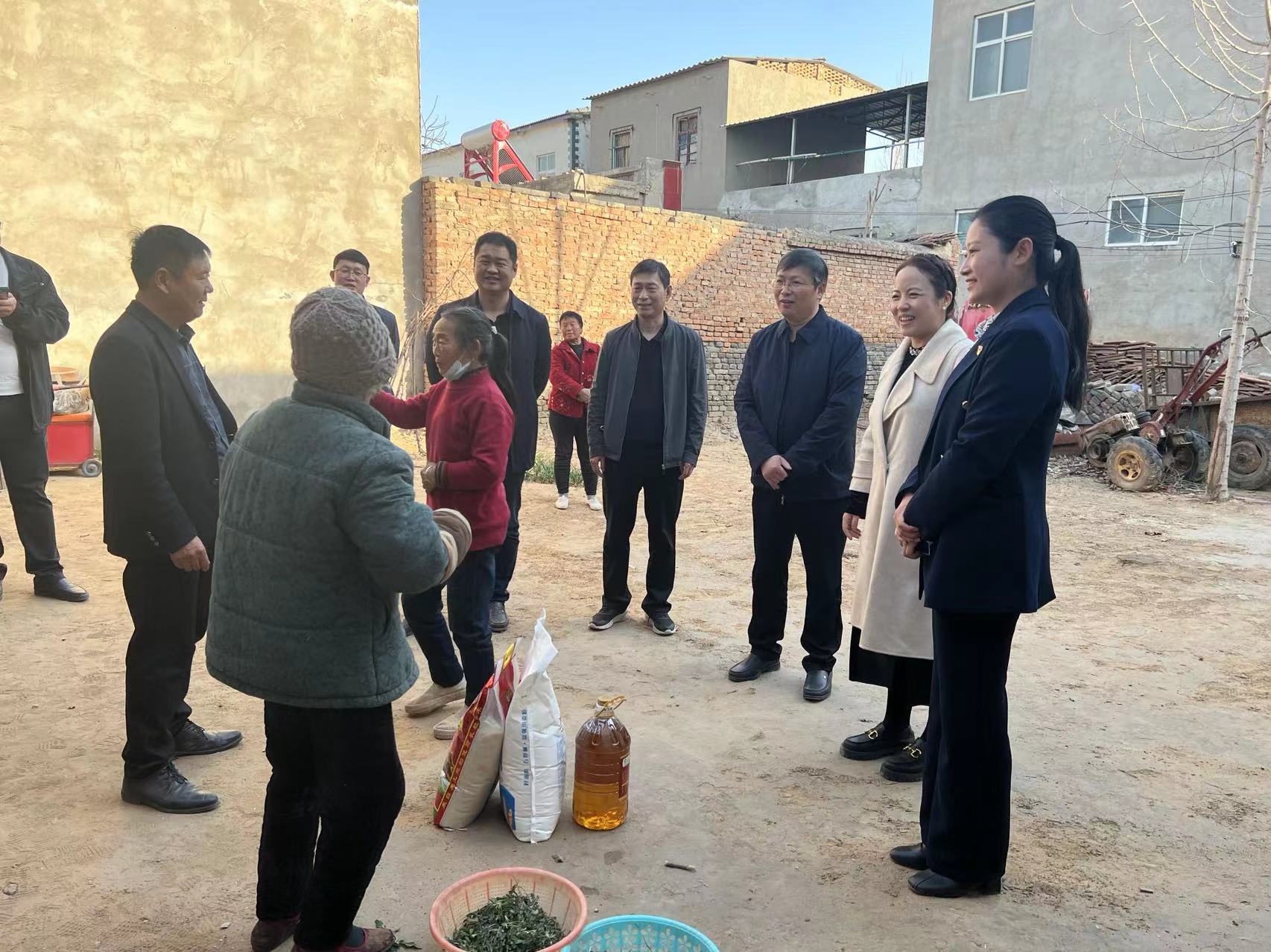 王燕萍一行首先来到潘店湖村看望慰问困难群众,每到一处,都与困难群众亲切交谈,关切询问他们的身体状况和家庭生活情况,并送上慰问品,叮嘱他们好好保重身体,坚定生活信心,克服当前困难,在各级党委和政府的关心和帮助下,过上越来越好的生活。