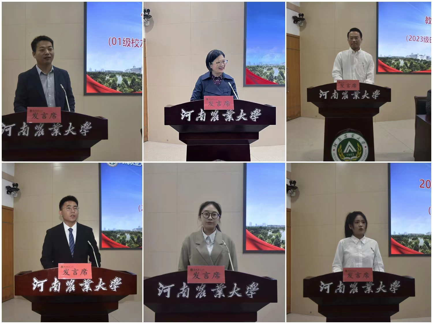 2001级优秀校友代表、校党委宣传部副部长周红飞结合自身经历,分享了爱国、求真、自信、奋斗四个方面的所思所得,并寄语同学们坚定理想信念、发挥专业优势、矢志艰苦奋斗,用实际行动践行“弘农爱国”的使命担当。
