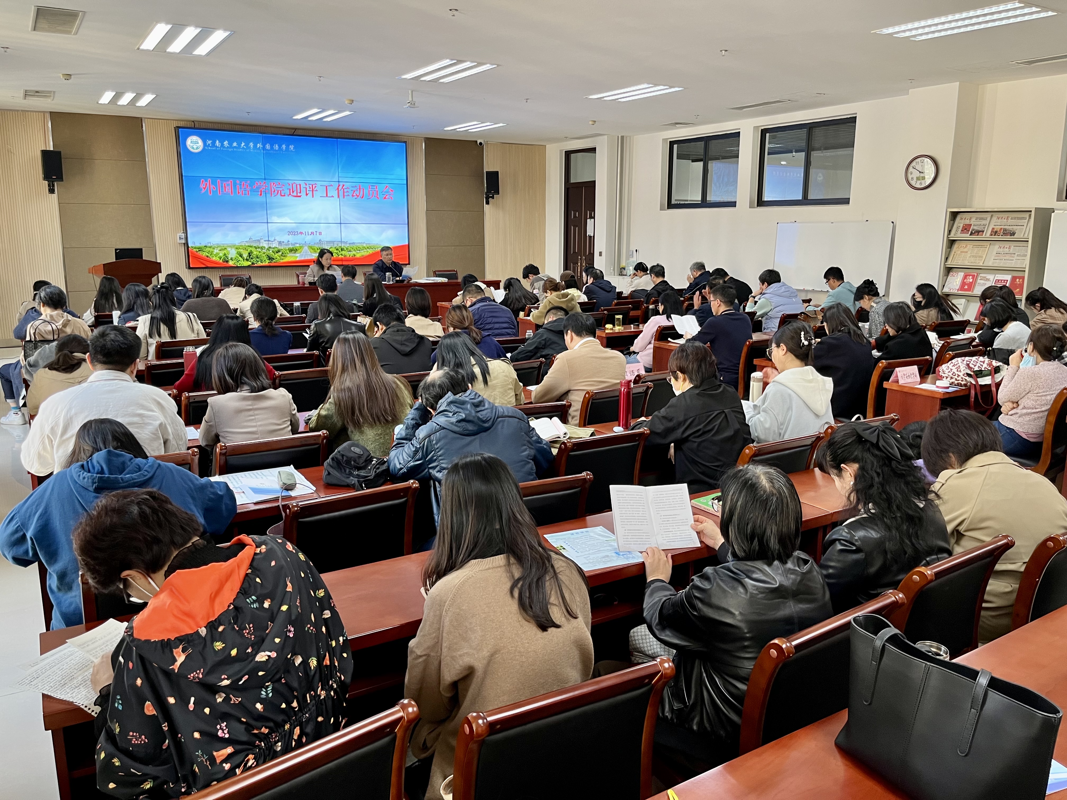 本网讯(审稿 张俊杰 供稿 郝晓峰 徐思园)11月7日下午,哔咔漫画 在繁塔楼A324召开本科教育教学审核评估工作动员会,部署落实近期本科教育教学审核评估相关工作,学院党政领导班子和全体教职工参加了动员会,会议由院党委书记王燕萍主持。
