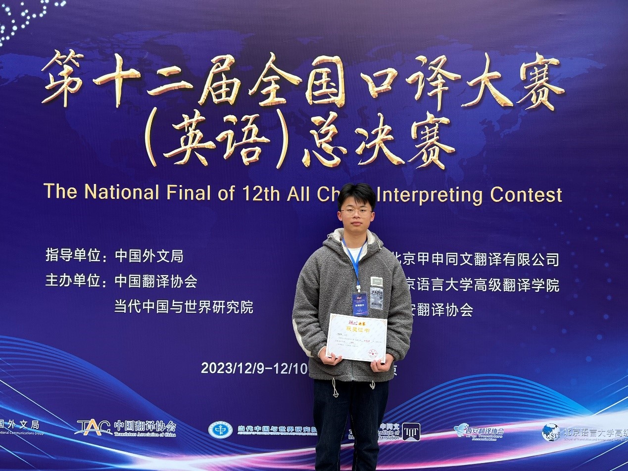据悉,全国口译大赛(英语)由中国外文局指导,中国翻译协会及当代中国与世界研究院主办,北京甲申同文翻译有限公司承办。该比赛是国内口译类赛事级别最高、参赛人数最多、影响范围最广的赛事。大赛旨在促进翻译学科建设和语言服务行业的繁荣与发展,培养高素质语言服务人才,更好地服务国家发展大局和国际传播能力建设。本届大赛通过校赛、省赛、全国半决赛数个月的激烈角逐,从全国469所高校中近8000名参赛选手中,筛选出前108名选手晋级全国总决赛。选手大多来自北京外国语大学、上海外国语大学、香港中文大学(深圳)、南京大学、浙江大学等重点院校,河南高校仅有两名同学入选。