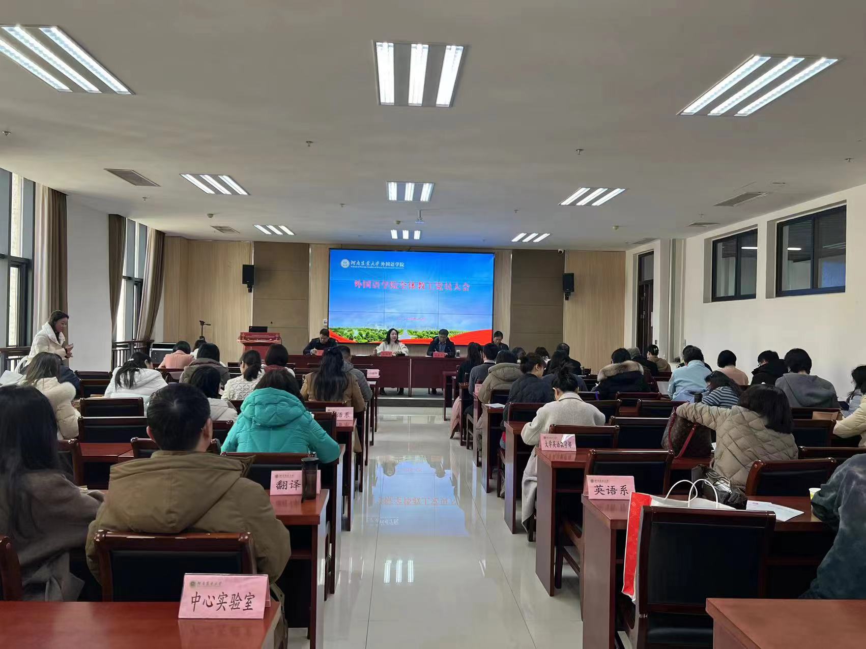 本网讯(审稿:王启佩  供稿:冯超 薛杰)为深入学习贯彻习近平新时代中国特色社会主义思想,持续深化党的创新理论武装,凝聚新学期真抓实干的工作作风。2月27日下午,学院召开全体教工党员大会。院党委书记王燕萍、院长张俊杰携全体领导班子成员出席会议,学院全体教工党员参加会议,会议由院党委书记王燕萍主持。