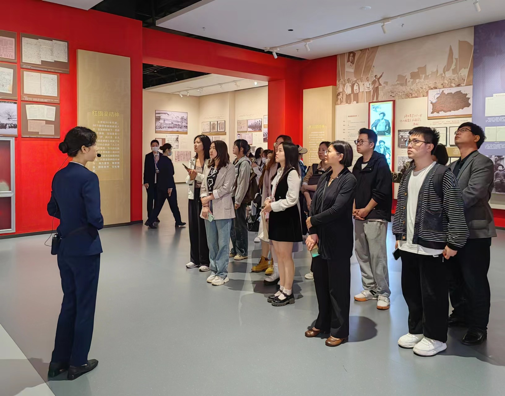 在讲解员的悉心引导下,师生首先参观了“百年恰是风华正茂”党史党性主题教育展。展览以中央档案馆、河南省档案馆等单位的500余件馆藏档案文献、实物及影像资料为主体,将红色资源与党史党性教育紧密结合,展示了党的百年奋斗历程和优良传统。同学们通过深入了解党的光辉历史,更加坚定了自己的理想信念,鼓舞了自己在全面建设社会主义现代化国家新征程中实现人生价值,努力为为实现中华民族伟大复兴的中国梦添砖加瓦。