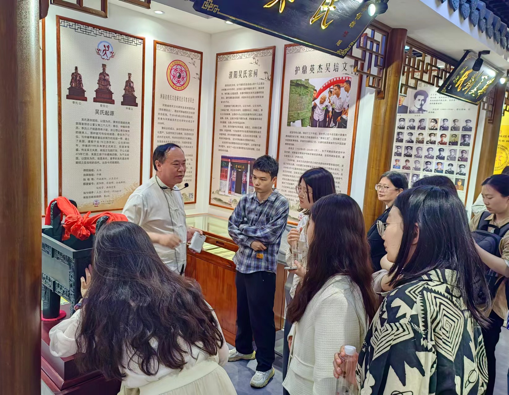 最后,师生共同参观了老家河南家谱档案展。讲解员首先带领大家参观了“河南——中华文化之源”和“河南——中华文化之根”主题展览,学生们深刻认识到了河南在中华文明发展史中的重要地位,更加坚定了文化自信。老家河南家谱档案展以家谱档案为线索,展示了河南家族文化的传承与发展。同学们通过参观学习,对我们的祖先与家族文化有了更深刻的认识,也体会到了档案在记录家族历史、传承家族文化方面的重要作用。