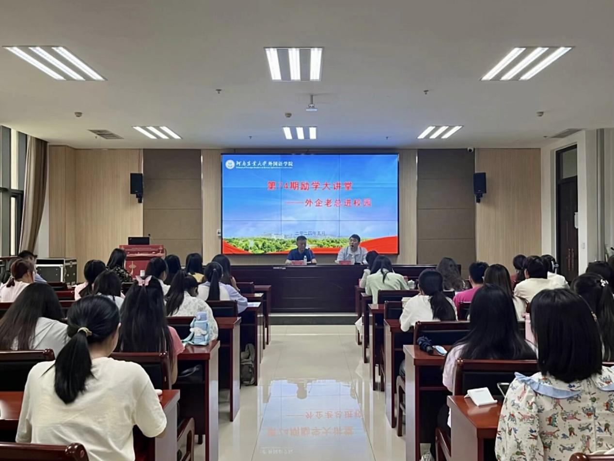 李涛以数智时代的就业挑战与机遇为中心,围绕就业环境、职业规划等多方面深入浅出地讲解如何做好就业前的相关准备,鼓励同学们展现自己的个人优势,锻炼自己的表达能力,以积极的心态不断提升自己的竞争力,实现自己的职业理想。郭凡和同学们分享了自己在美国从求学到就业,再到创业的难忘经历和心路历程,结合外语就业方向,就目前国际市场上本单位实际,向同学们提出三点建议:走出校园,注重实践;把握机遇,大胆尝试;培养兴趣,保持热爱。