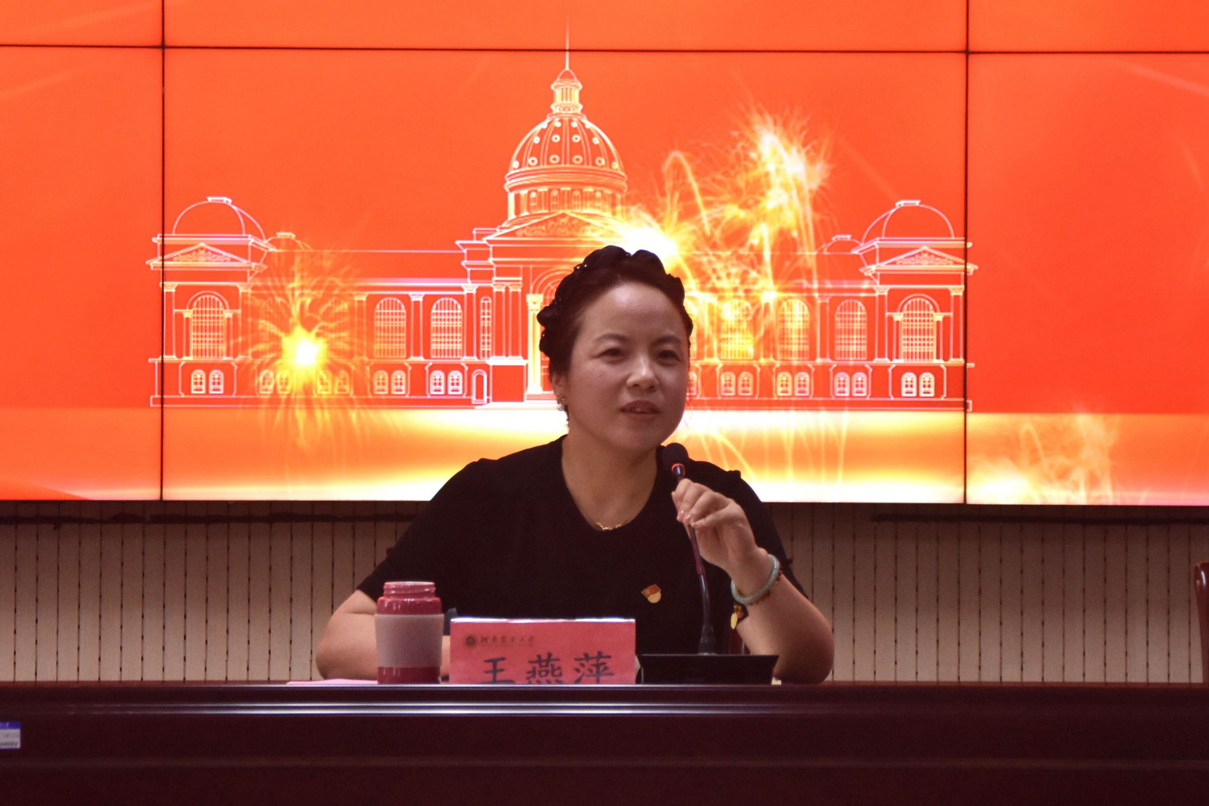 王燕萍向辛勤耕耘在教学、科研、管理和服务一线的全体教职工致以节日的问候和崇高的敬意,向受到表彰的先进个人表示祝贺,充分肯定了广大教职工在学院事业发展中付出的辛勤努力和作出的突出贡献,同时殷切希望全体教职工凝心聚力、奋发图强,更加忠诚于党的教育事业,履行教育工作者的职责,不断加强和改进教学质量,为学院从“教学大院”迈向“教学强院”作出新的更大贡献。