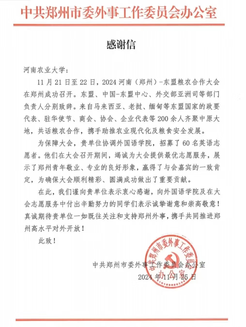 外语学子参与2024河南—东盟粮农合作大会志愿活动