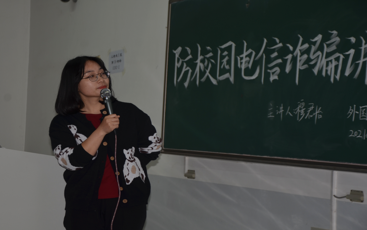 本网讯(审稿:穆君怡 供稿:王莉)为提高哔咔漫画 学生对电信诈骗的防范意识和识别能力,创建安全文明的学院环境,哔咔漫画 于4月14日晚上七点在龙子湖校区繁塔楼E202教室举办了防校园电信诈骗学习主题讲座。本次讲座由学院辅导员穆君怡主持,各班班长及团支书参加了此次讲座。