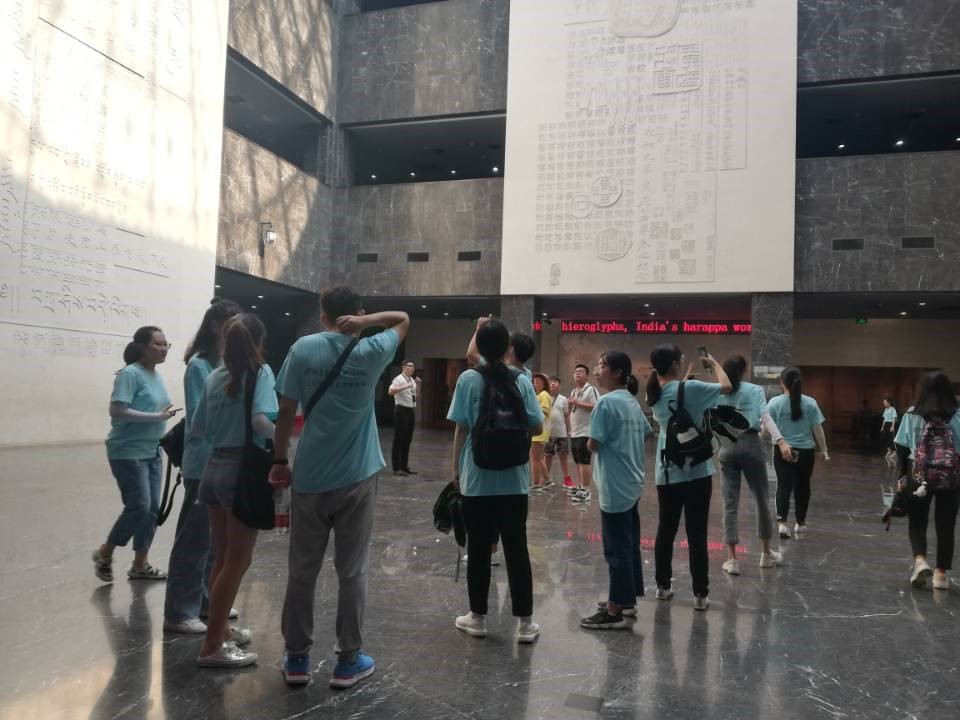 7月1日,队员们从学校启程奔赴安阳市,来到了中国文字博物馆。一进入文字博物馆,队员们就被四面墙上的文字介绍震撼,深深感受到中华文字的历史之悠久。在观看过程中,他们深深地被这些甲骨文吸引,被龟骨吸引,好几个人围在一起,趴在一个展览台上静静地观察着展览品。看到如此形象的象形字,他们不由得赞叹古人的智慧。但也有一些他们看不懂的象形字,可能是因为他们对古代社会的生活不够了解,这也激励引导着他们在课下多花时间来了解这些历史文化,丰富课外知识。经过此次学习,他们了解了汉字的起源、发展和演变历程以及商代青铜文化,重点了解了甲骨文的造字方法。