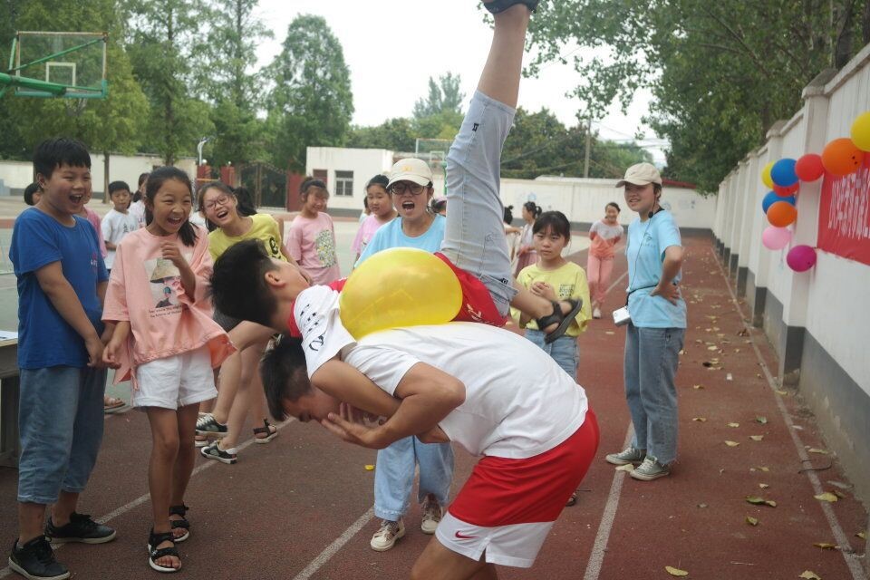 为丰富孩子们的校园生活,提高他们的综合素质,使他们在活动中体验合作与竞争的乐趣,享受体育带来的快乐,团队开展了一场形式新颖的趣味运动会。运动会的比赛项目有:夸夸我的小伙伴、步步为营、气球爆爆乐等,每一个项目看似简单,却需要学生们默契的配合。例如,气球爆爆乐这个项目则需要一个小伙伴背起另一位小伙伴,让气球在两个人的后背间挤爆。欢乐在一个个气球爆炸的声音中传递,默契在一次次的尝试中加强。