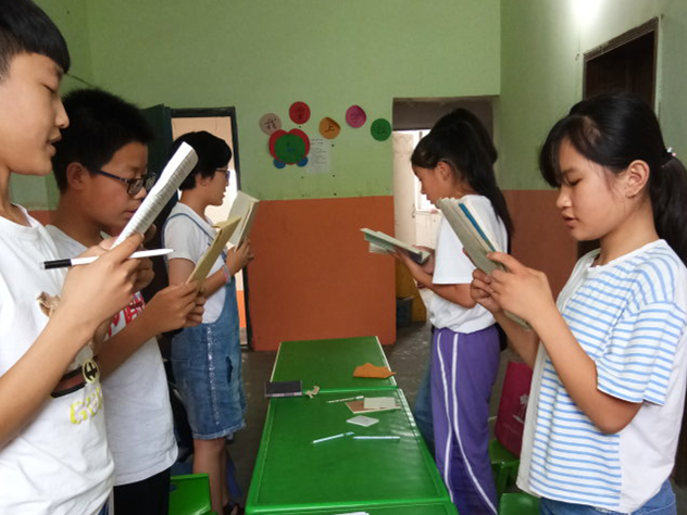 7月5日,团队正式开始教学任务。队员们明确分工,相互配合,积极备课,孩子们在课堂上表现积极,与老师相处融洽。为了严抓英语基础,队员制订了早读计划,每天早上都会让学生背诵讲过的知识点,并逐一提问。美术课上,老师为学生们讲解绘画技巧,带领他们用画笔描绘出缤纷世界。音乐课上,孩子们大声歌唱,跟着音乐老师遨游在音乐的海洋里。