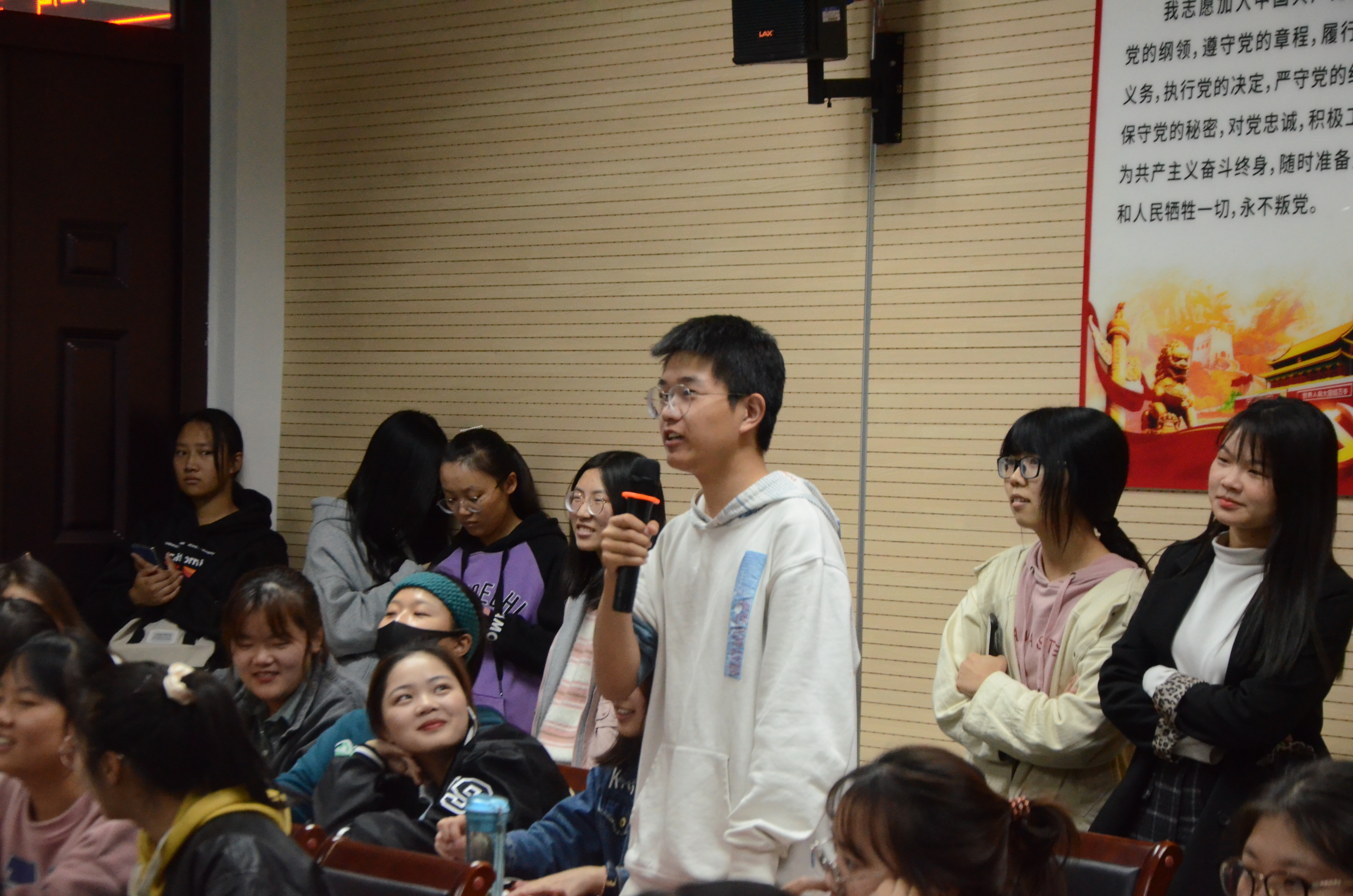 随后,另一位主讲人以番茄酱的制作过程为例带领同学们体验了视译练习并与同学们进行了现场互动。同学们纷纷参与其中,积极表达想法,并提出了自己的疑惑。针对同学们提出的问题,主讲人一一进行了回答。讲座最后,主讲人向同学们提出了“四有”建议,即“大一要有职业规划意识,大二要有专业导向意识,大三要坚持发展意识,大四要有职业超前意识”,并勉励同学们按照自己的目标和理想有条不紊、循序渐进地努力,直至实现自己的理想。
