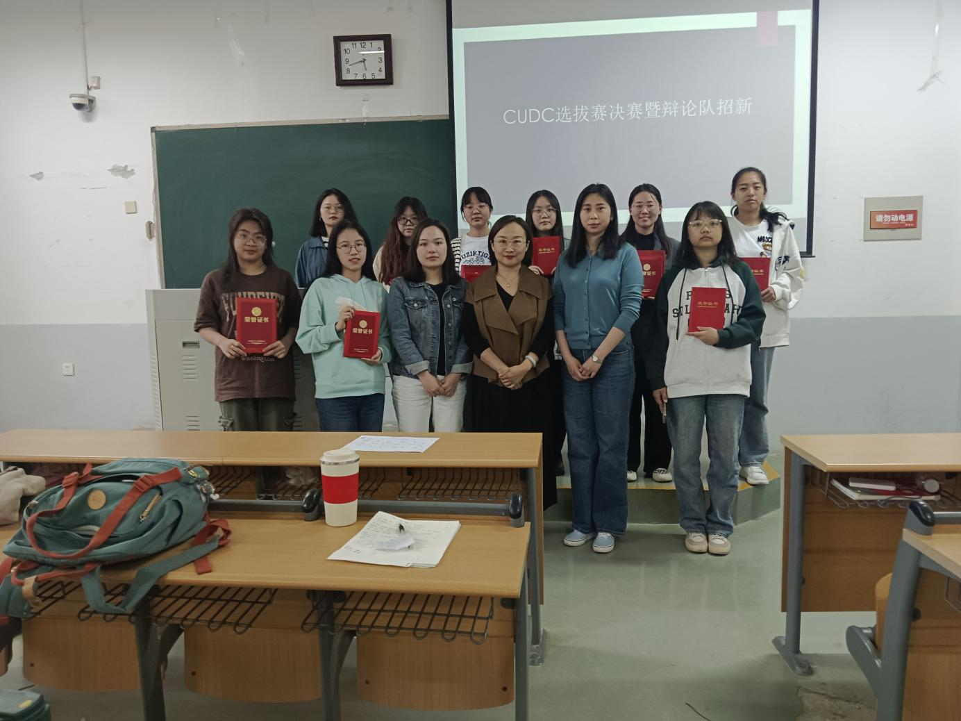 在繁塔楼E201举行中国大学生英语辩论赛(CUDC)选拔赛决赛暨院英辩队招新活动。英语系宋扬、朱婧、王竹君老师担任评委。