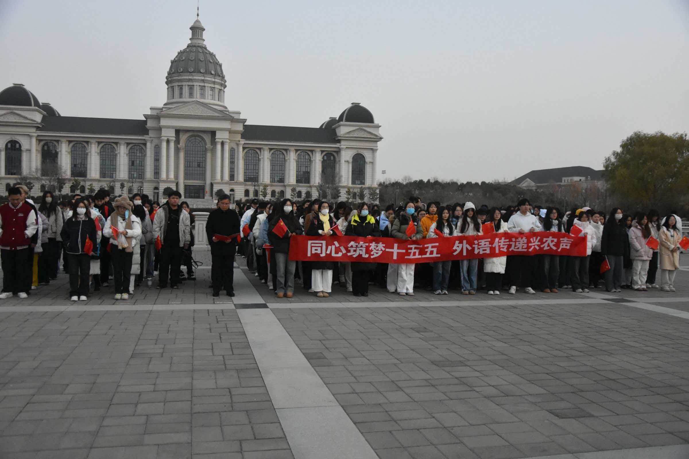 于龙子湖校区举行“同心筑梦十五五,外语传递兴农声”升旗仪式。院长张俊杰携领导班子成员出席活动,学院教师代表及龙子湖校区所有研究生、本科生参加升国旗仪式。仪式由院长张俊杰主持。