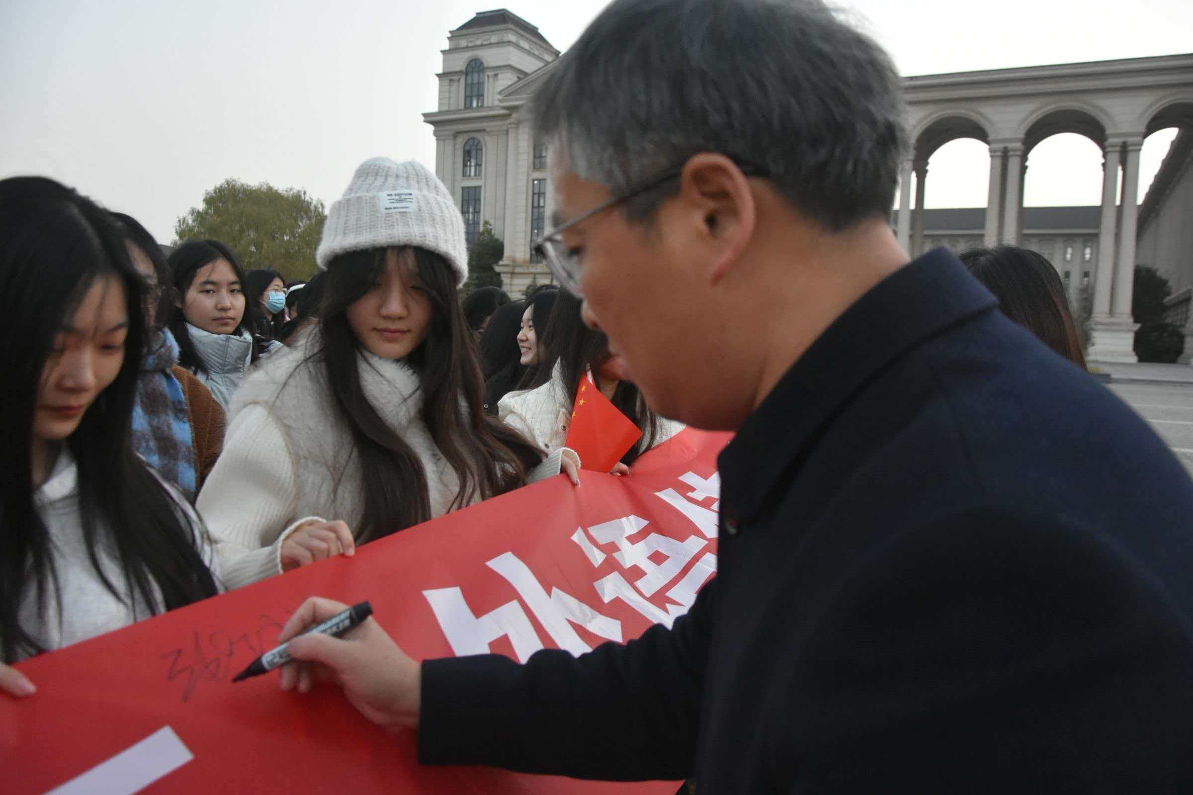 仪式尾声,全体师生积极响应号召,共同参与条幅签名活动。以笔墨践诺,定格青春担当,让外语力量在服务国家战略、建设农业强校的征程中绽放光彩。