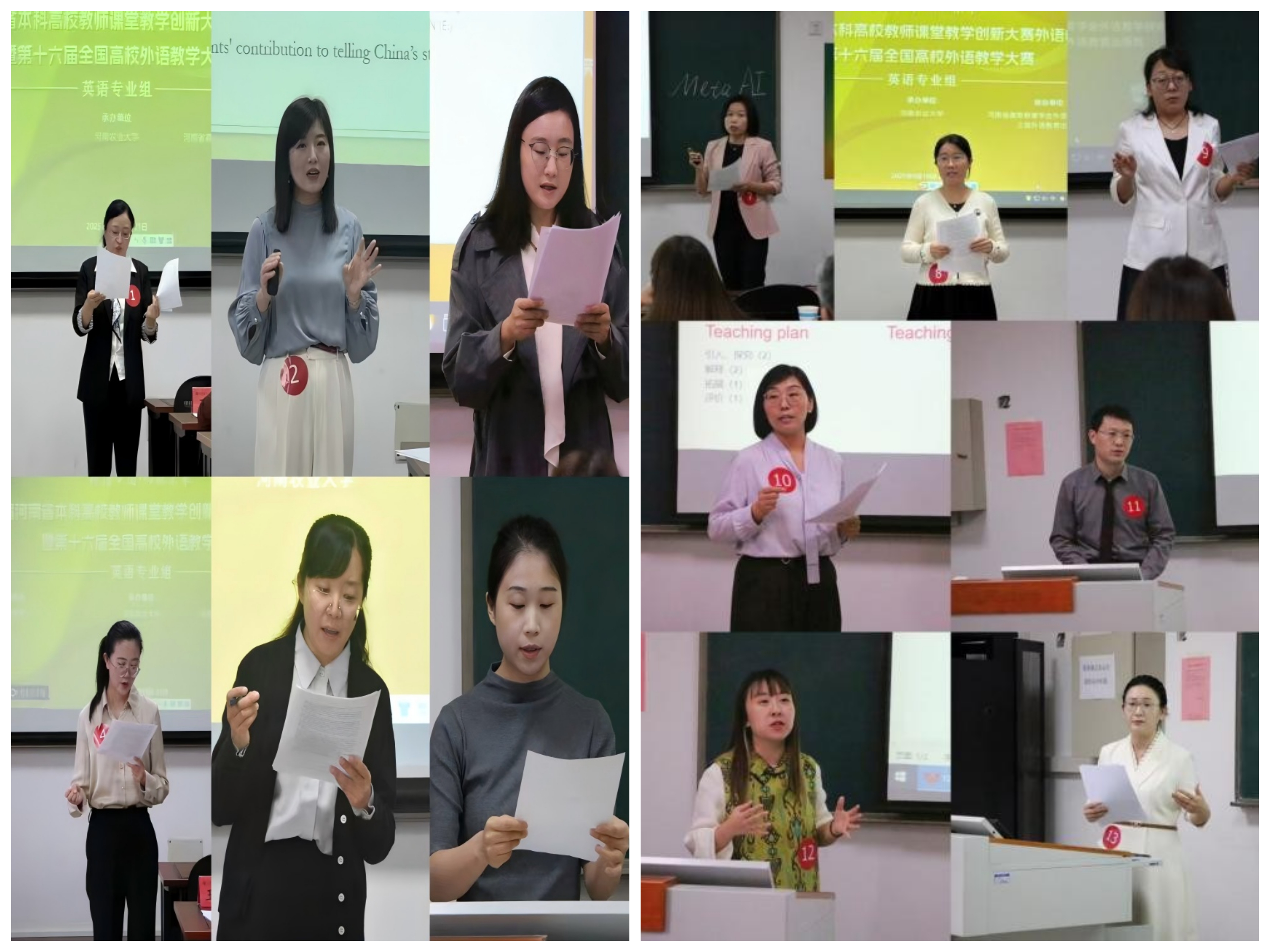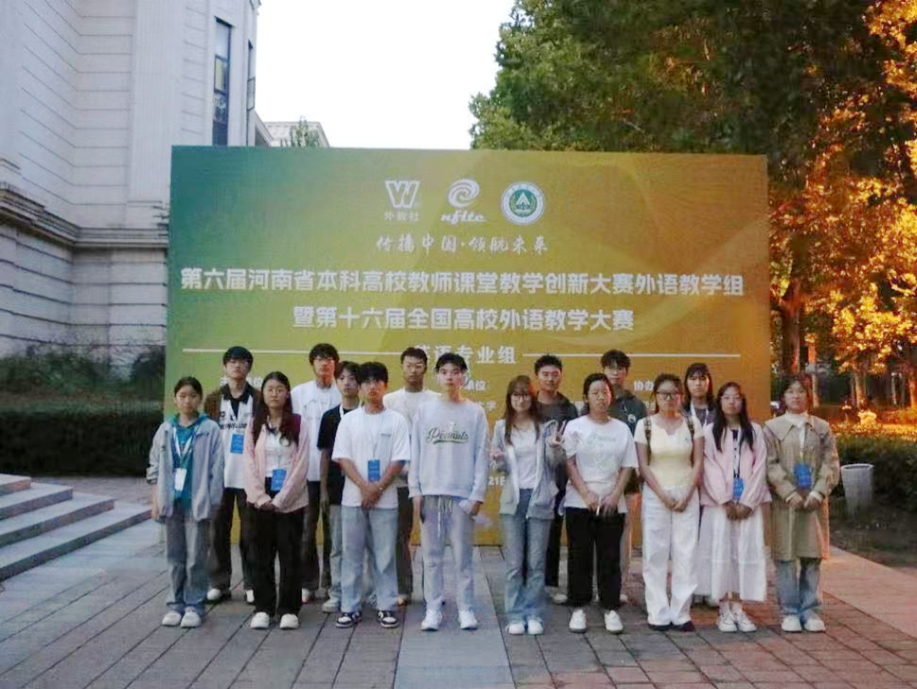 承办,河南省高等教育学会外语教学研究分会、上海外语教育出版社协办。大赛以“传播中国 领航未来”为主题 ,吸引了全省众多高校的英语专业教师同台竞技,旨在推动高校中青年外语教师研究大学英语教学理论,探索数智化教学创新,提升教学素养,为中青年教师搭建学习和交流的平台。来自多所高校的资深专家和教学名师担任评委。
