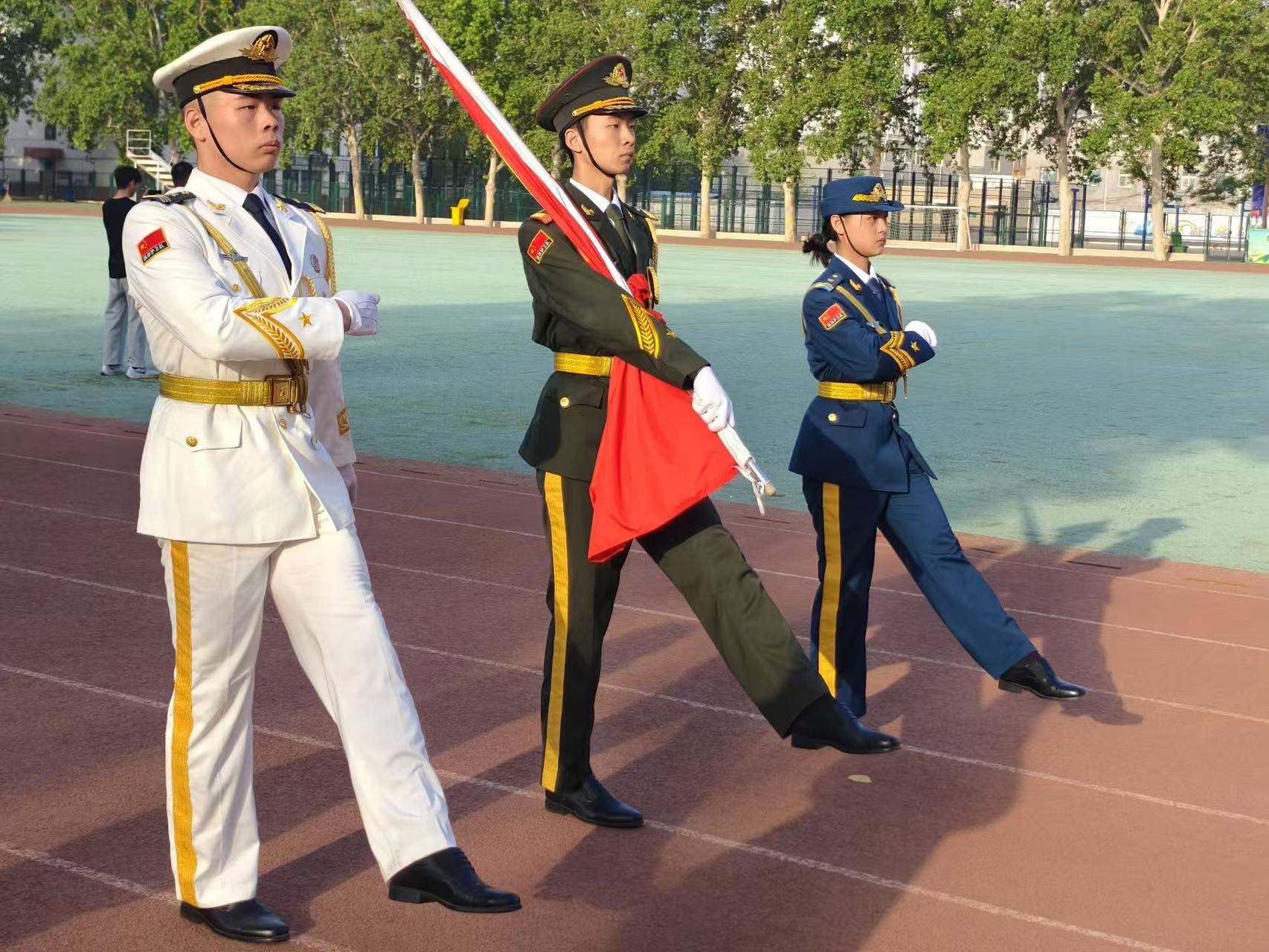 上午七时,升旗仪式正式开始。国旗护卫队昂首挺胸,迈着整齐而坚定的步伐护送国旗入场。随着庄严的《义勇军进行曲》奏响,五星红旗在晨曦中缓缓升起。全体师生庄严肃立,共唱国歌,表达对伟大祖国的崇高敬意和深深祝福。