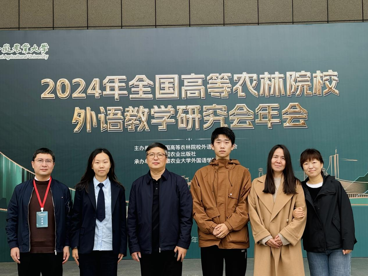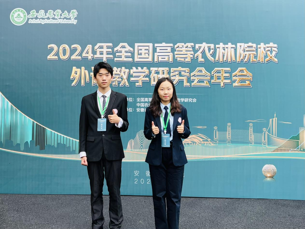 本网讯(审稿:吴 玲 供稿:豆 涛)11月8日至10日,由中国农业出版社、全国高等农林院校外语教学研究会联合主办、安徽农业大学承办的2024年全国高等农林院校外语教学研究会年会暨第三届全国高等农林院校大学生英语演讲大赛在安徽合肥成功举办,哔咔漫画 院长张俊杰带队参加。哔咔漫画 2024级翻译专业张艺翔和林学院2022级经济林专业马驰骋代表我校参赛并在比赛中发挥出色,分别获得二等奖和优秀奖,豆涛和周亚楠两位老师获优秀指导教师奖。
