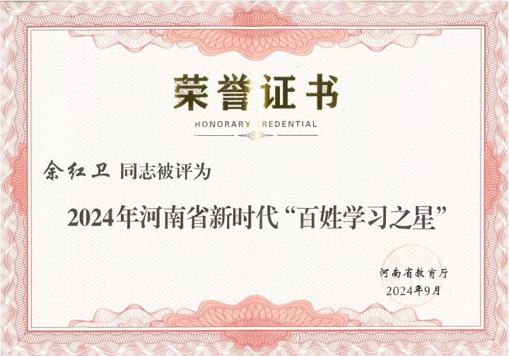 哔咔漫画 教师获2024年河南省新时代“百姓学习之星”荣誉称号