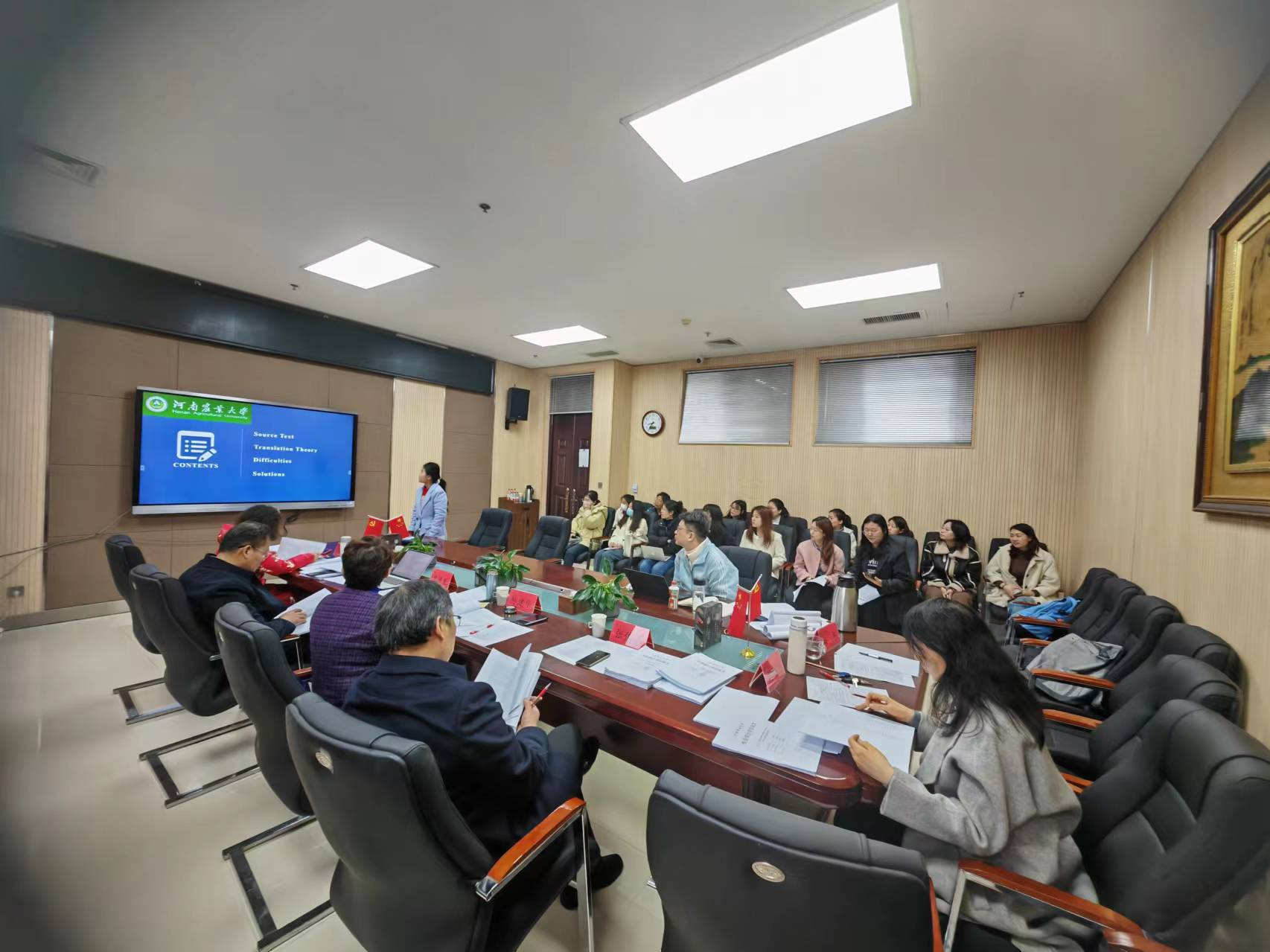 2024年英语笔译专业研究生中期考核暨学位论文预答辩于3月25日顺利举行。此次答辩分为三个小组,特邀华北水利水电大学党兰玲教授、河南财经政法大学孙建华教授与郑州航空工业管理学院郭银铃教授分别担任委员会主席,安阳学院校长单伟龙教授与学院全体硕士生导师担任委员,2023年新晋硕士生导师旁听观摩学习。共有29名研究生参与本次中期考核暨预答辩。2023级研究生观摩旁听。