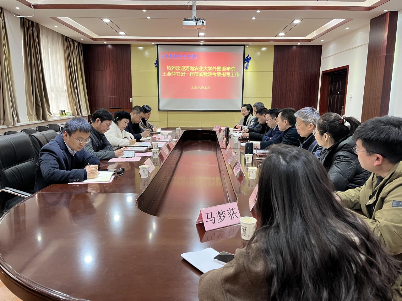 本网讯(审稿:王启佩 供稿:冯超)2月22日上午,院党委书记王燕萍带领班子成员、党政办和团委相关负责同志赴华北水利水电大学能源与动力工程学院考察交流。华北水利水电大学能源与动力工程学院党委书记孙垦、学院班子成员、各教工党支部书记、团委书记及组织员参加活动,座谈会由孙垦主持。