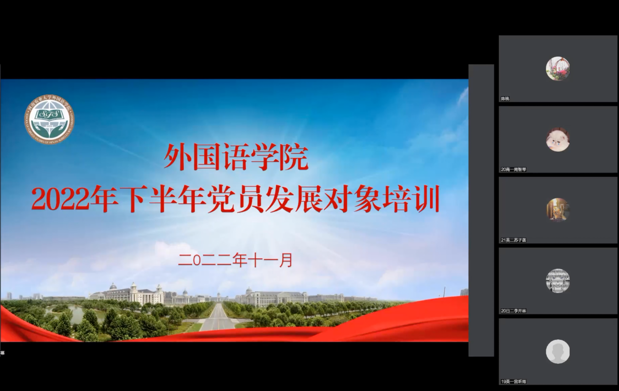 举办2022年下半年党员发展对象培训班,院党委书记王燕萍担任主讲嘉宾,全体发展对象参加。