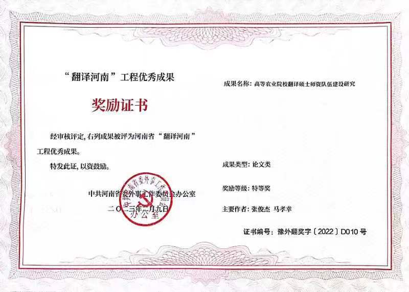 在翻译理论与实践研究、语言服务等领域的学科特色和优势,为整体性构建新时代河南特色的对外话语体系做出了新的贡献。