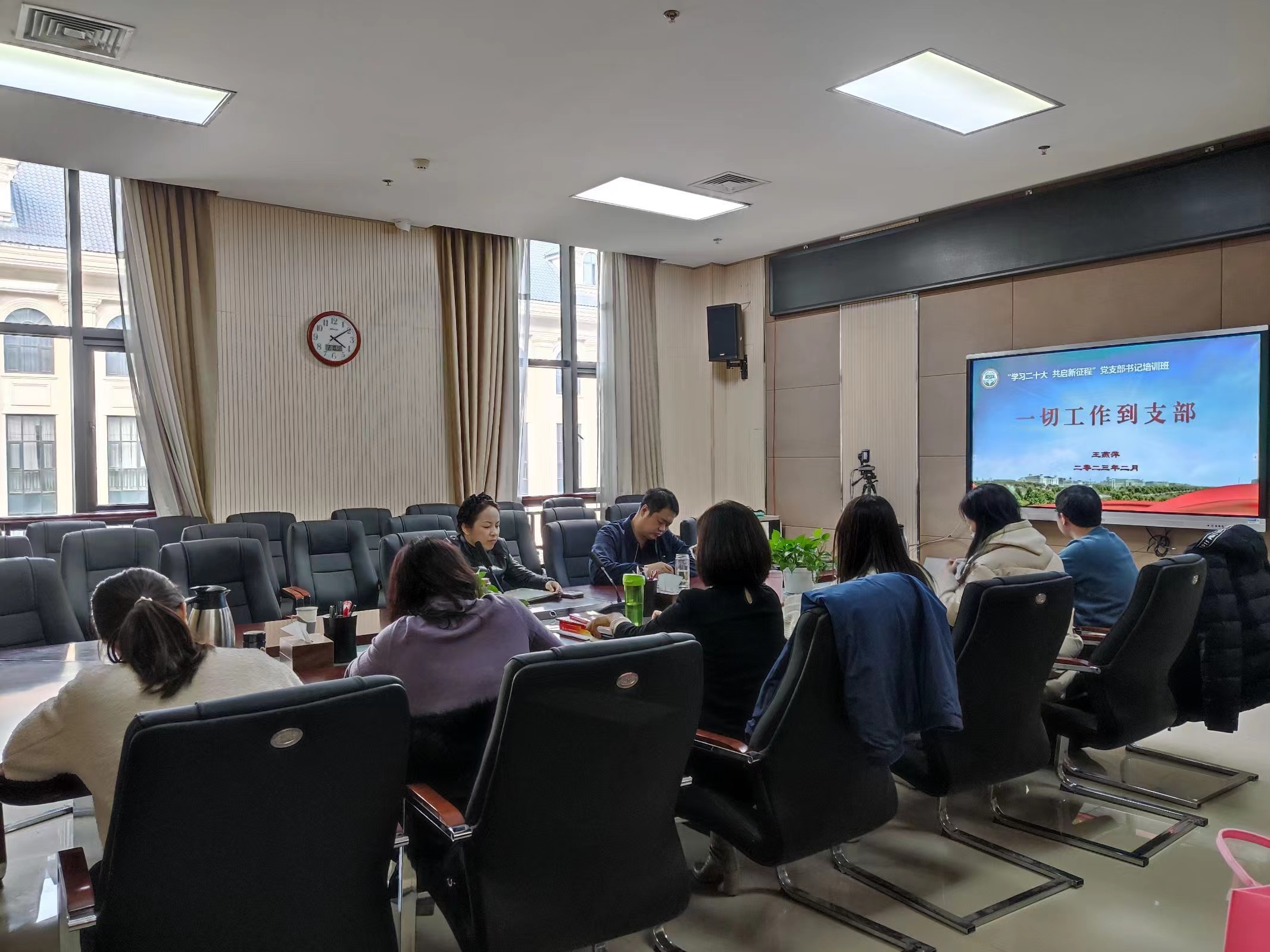 在龙子湖校区繁塔楼A320会议室举办“学习二十大 共启新征程”党支部书记培训班。院党委书记王燕萍携全体教工党支部书记和部分学生党支部书记参加培训,活动由院党委副书记王启佩主持。