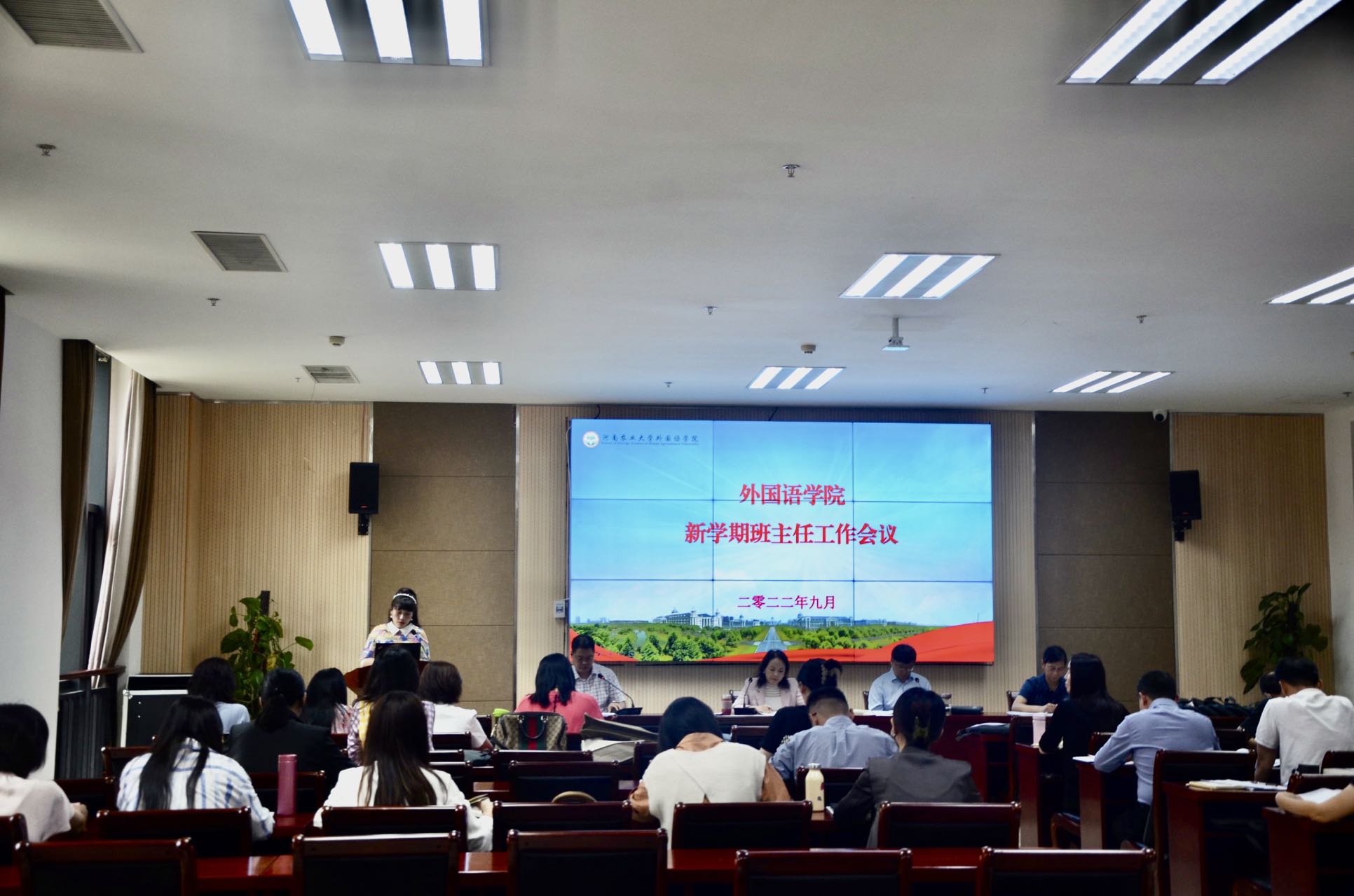 在龙子湖校区召开2022年秋季学期班主任工作会议,院党委书记王燕萍、院长张俊杰与全体班子成员、年级辅导员以及全体班主任参加会议。会议由院党委副书记王启佩主持。