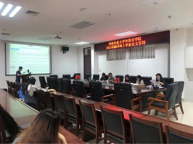 通过线上线下相结合的方式组织开展了2022届翻译硕士论文答辩工作。本次答辩特邀河南大学教授杨朝军、郑州大学外国语与国际关系学院王志伟教授、河南师范大学教授赵文静担任答辩主席,张俊杰院长、李喜芬、张明玺、陈洁、李永红、张冬梅等硕士生导师担任答辩委员,2022届硕士研究生参加本次答辩,2021级硕士研究生同时参与观摩。