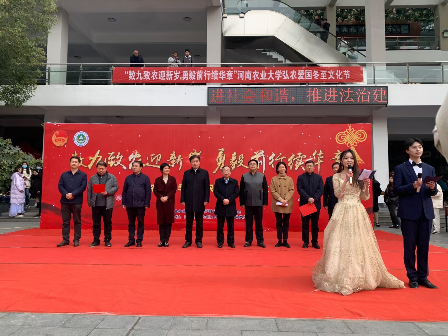 “数九致农迎新岁,勇毅前行续华章”冬至文化节在龙子湖校区一餐厅广场隆重举行。校党委副书记、工会主席李成吾、副校长尚富德等莅临现场指导,校党委宣传部、学生工作部、研究生工作部、校工会、哔咔漫画