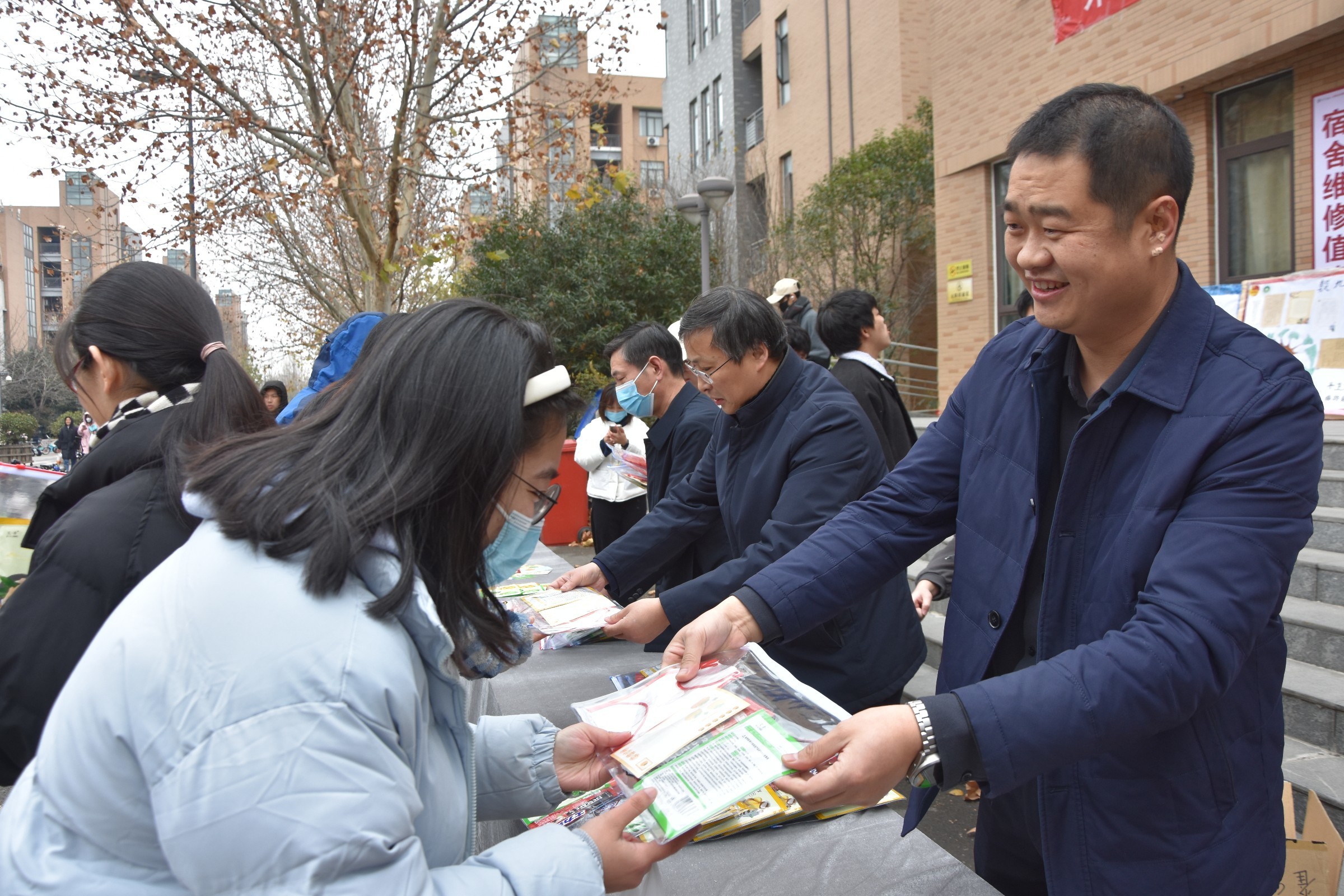 本网讯(审稿:王启佩 供稿:陈桃、黄湘)为帮助考研学子缓解考研压力,坚定信心,鼓舞士气,12月24日中午,学院于龙子湖校区海棠园楼下开展“研途有你,温语相伴”冬季送温暖活动,院班子成员以及学院团委老师到场,为考研学子们加油助威。