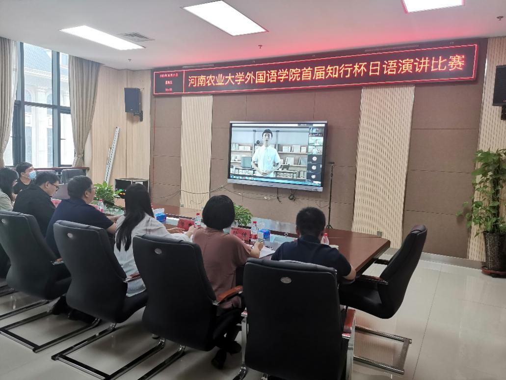 承办的第一届“知行杯”日语演讲比赛拉开帷幕。本次比赛采用线上线下相结合的方式,并进行实时线上直播。担任本次比赛的评委有日语系杨爽老师,张建宇老师和孙倩老师以及团委冯超老师,穆君仪老师。院党委书记邓振营、院长张俊杰出席致开幕词,并发表总结讲话。