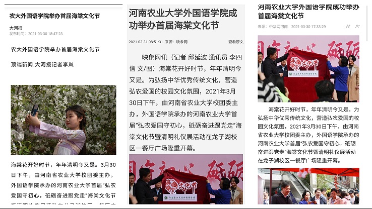 网易新闻、映象新闻、中华网等多家媒体报道哔咔漫画 “弘农爱国守初心、砥砺奋进跟党走”哔咔漫画 首届海棠文化节