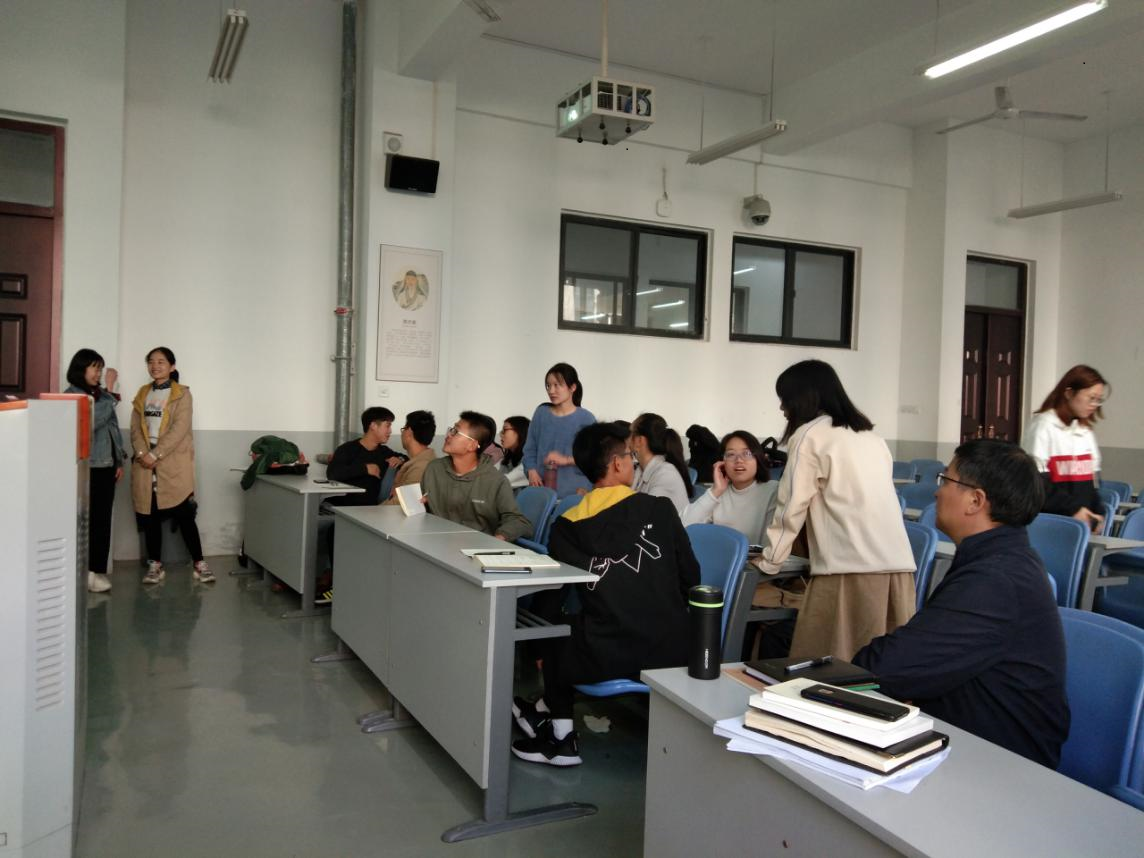在主持人介绍本次活动的出席嘉宾及活动内容后,活动正式开始。首先,参与者进行了自我介绍,他们个个激情洋溢,自信大方,流利地道的英语口语和抑扬顿挫的语音语调展示了他们优秀的英语口语能力,赢得了张教授的赞赏。随后,参与者四人组成一组,以口语交流的方式展开热烈的讨论。他们从不同角度出发,以独特的眼光分析“weather”,积极分享自己的独到见解,讨论时他们从容不迫、思路清晰、表达顺畅,现场气氛轻松愉快。