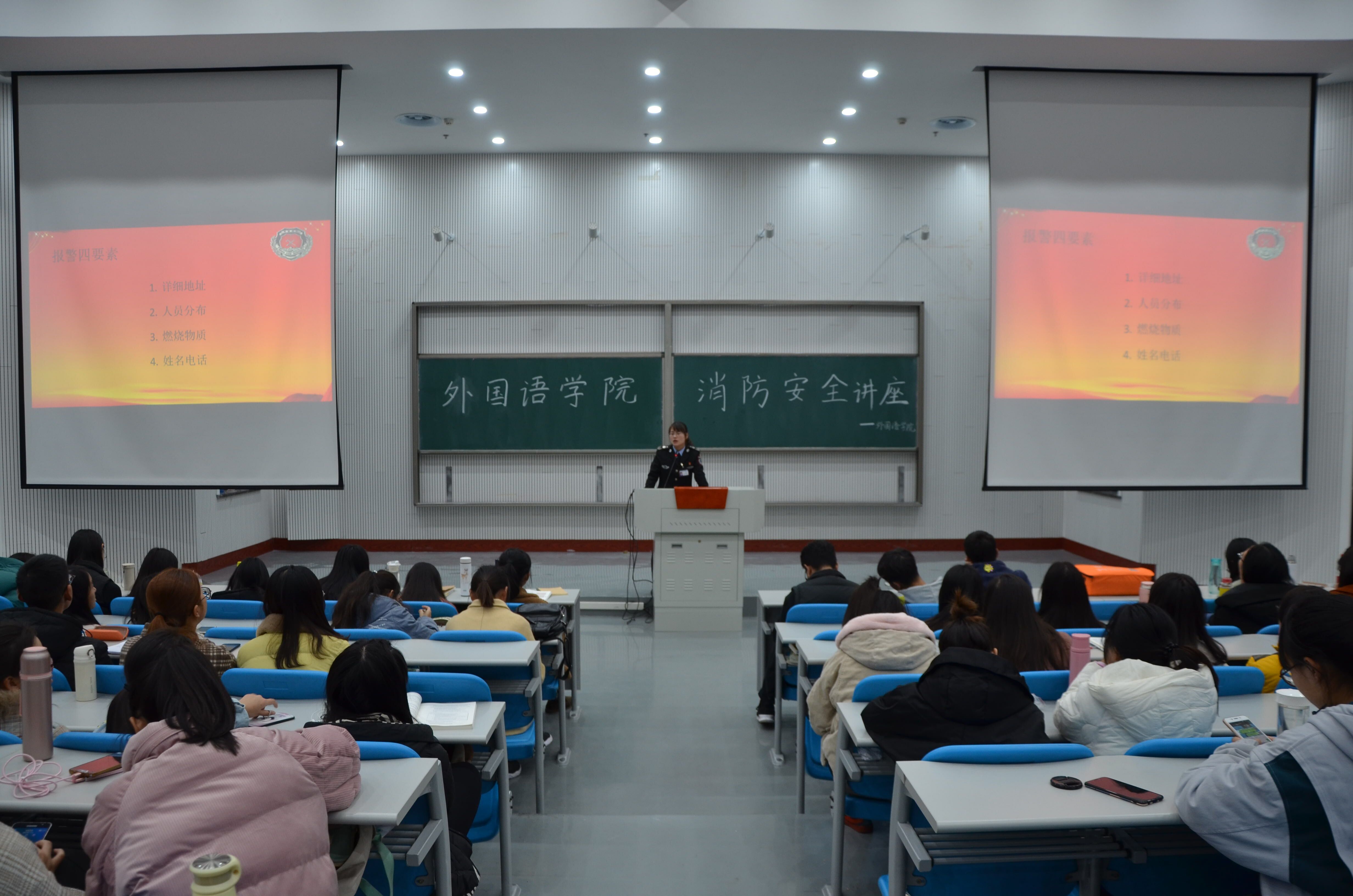 诚邀河南省消防协会宣传与服务中心教员张金霞,于龙子湖校区繁塔楼AB间大教室2为学院学生作消防安全知识讲座。15、16、17级部分学生及18级全体学生参加本次讲座。