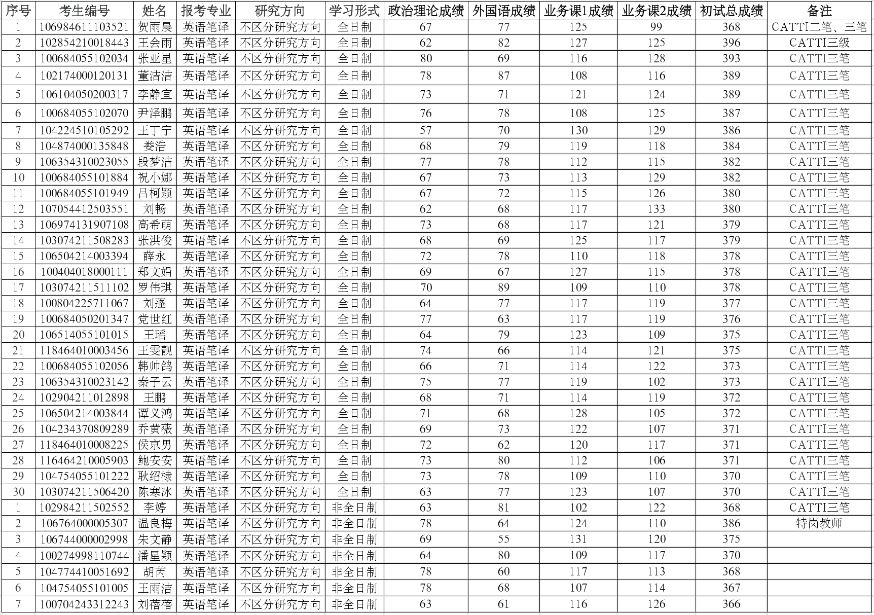哔咔漫画 英语笔译专业2024年硕士研究生复试名单(调剂)