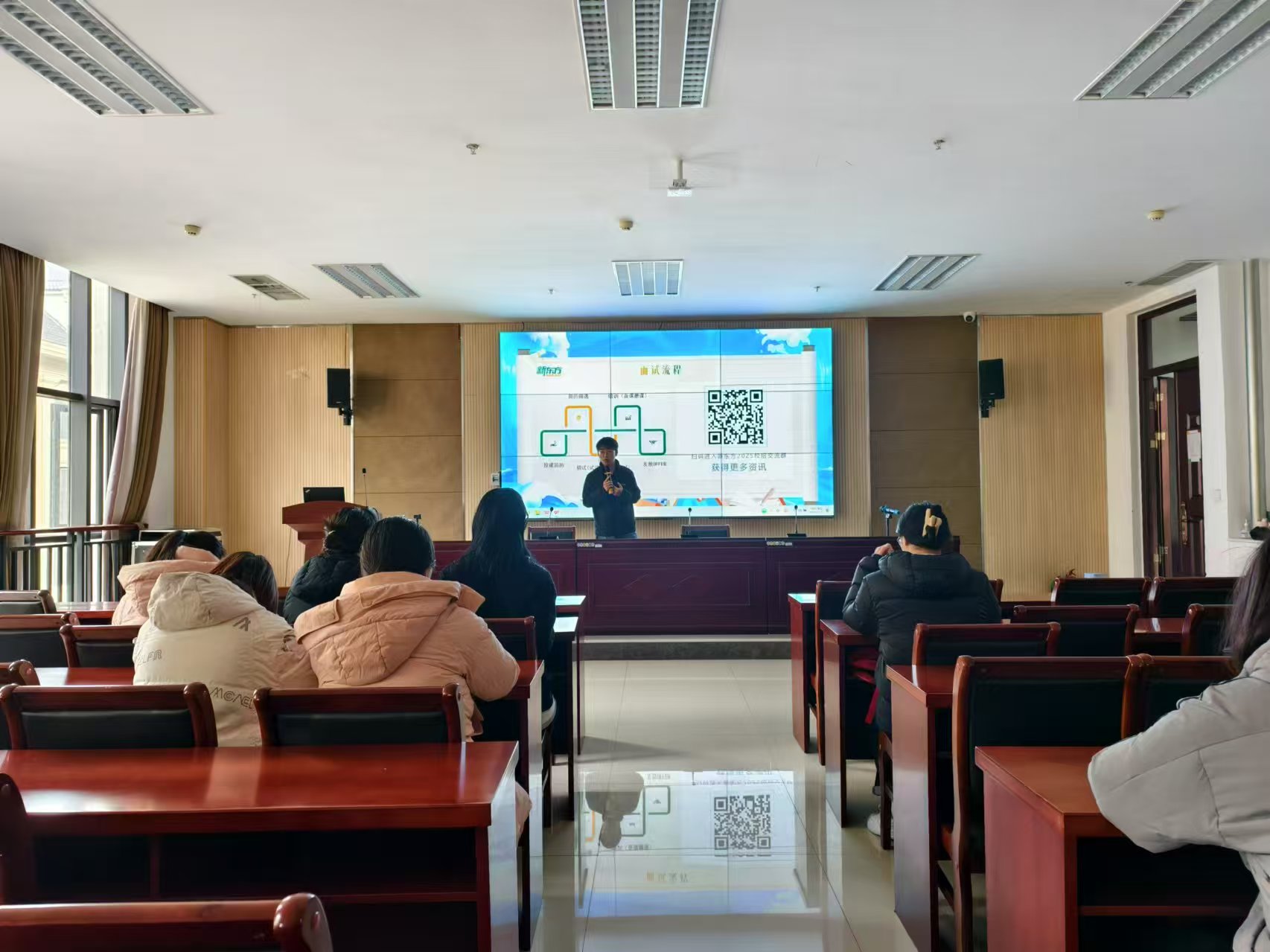 本网讯(审稿:杨鑫 供稿:武宗励)为进一步推进哔咔漫画 毕业生高质量就业,开阔学生视野,12月27日下午,哔咔漫画 于龙子湖校区繁塔楼A324承办新东方校园招聘宣讲会,新东方校园招聘负责人成昕宇及企业部门代表出席,学校21级毕业生代表参加此次宣讲会。
