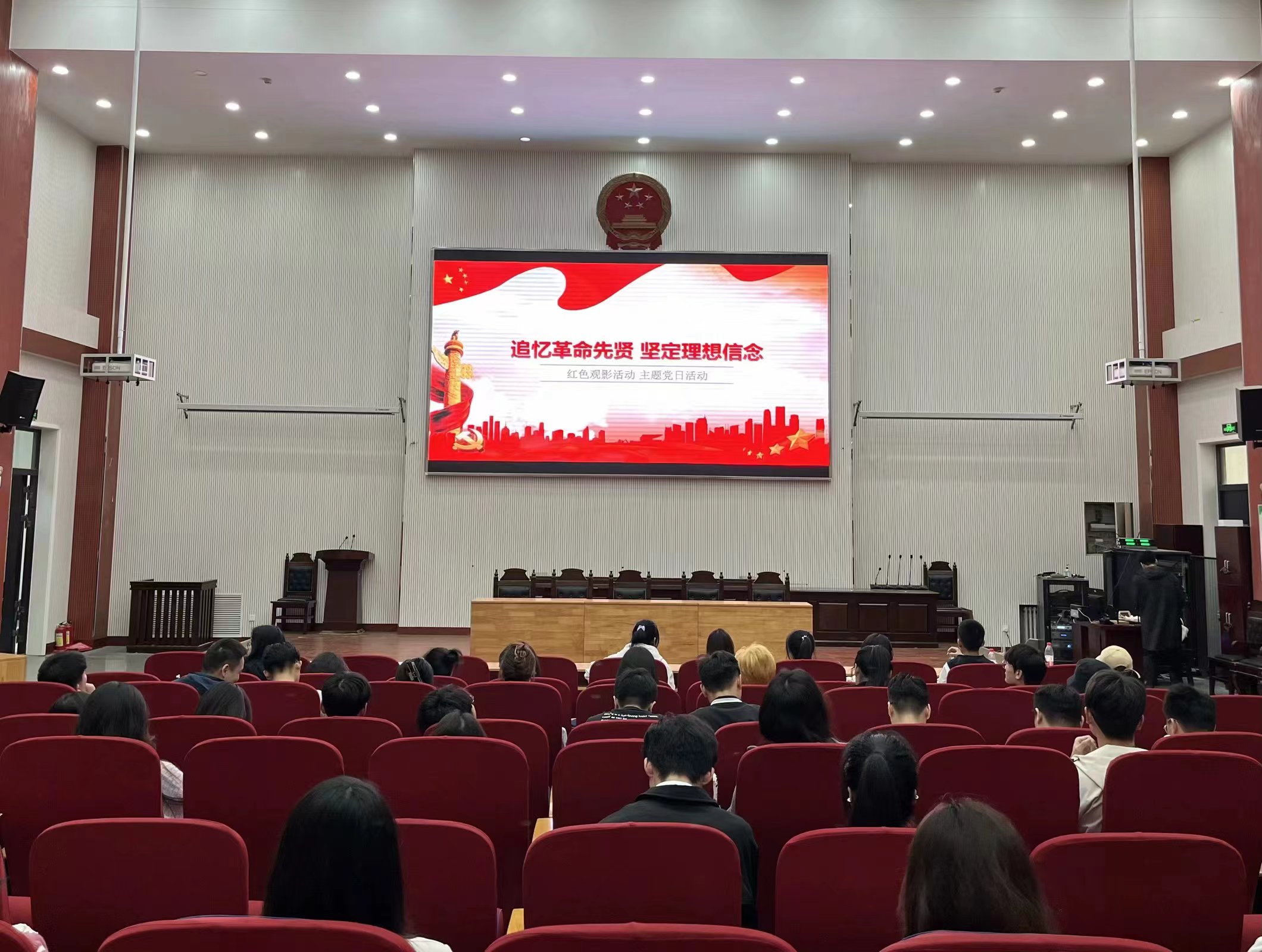 本网讯(审稿:王启佩 供稿:冯超)为了传承红色基因,激励同学们争做有为青年,10月24日下午,哔咔漫画 与文法学院、经管学院、信管学院共同组织党员在繁塔楼模拟法庭开展“红色光影”活动,学院21级全体学生党员及大学生党建办公室学生干部参加此次活动。