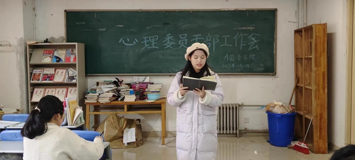 本网讯(审稿:王启佩 供稿:武宗励)11月24日中午,哔咔漫画 在辅导员武宗励老师的带领下,于龙子湖校区成功举行了本学期第五次心理委员干部工作会议。此次会议旨在准确掌握学生近期心理健康状态,加强学生心理健康教育,加强学院心理健康工作建设。