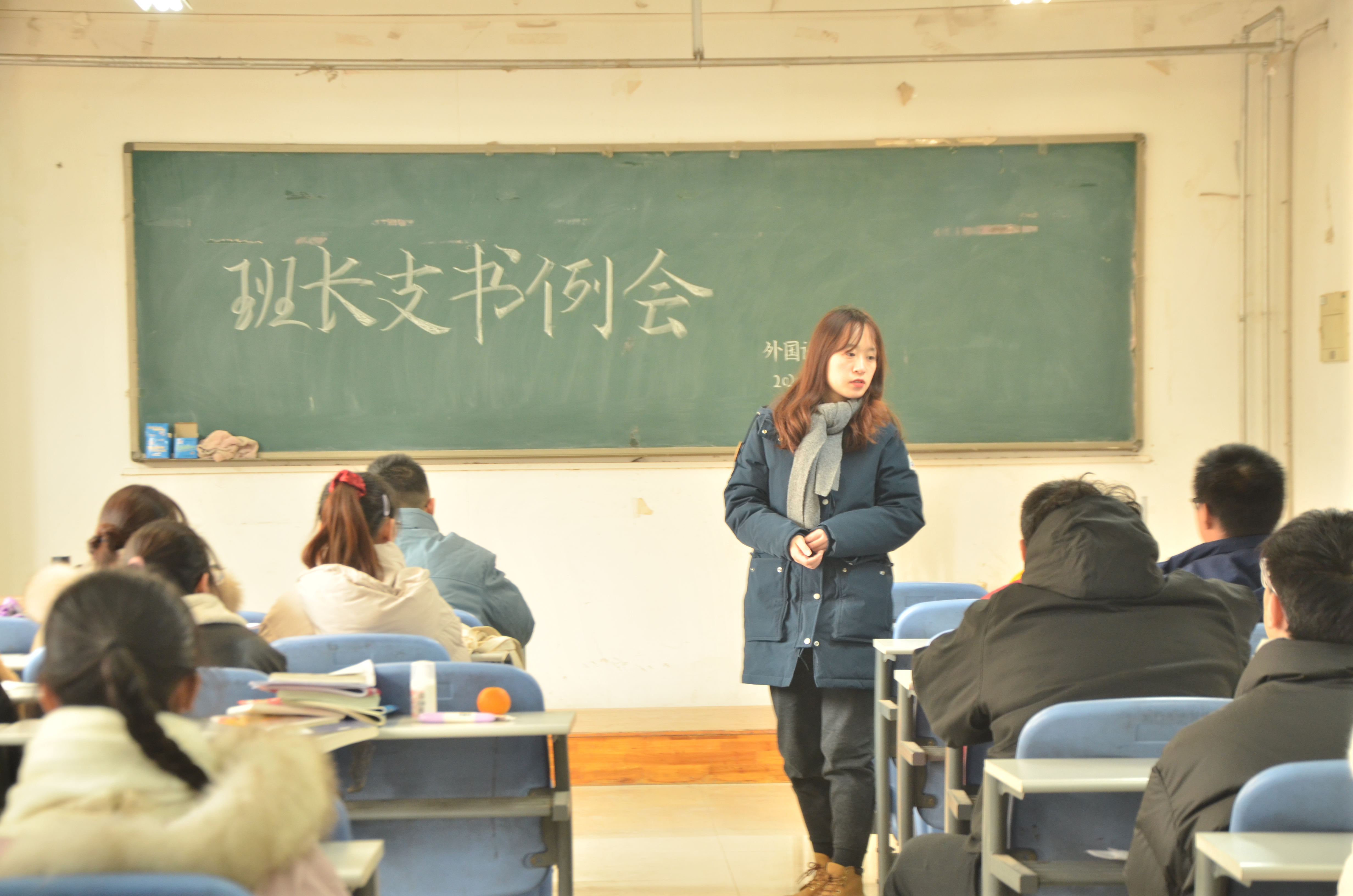 于龙子湖校区海棠园202自习室召开了本学期第十四次班长支书例会。团委副书记冯超、辅导员牛烁携主要学生干部及各班班长支书出席此次例会。