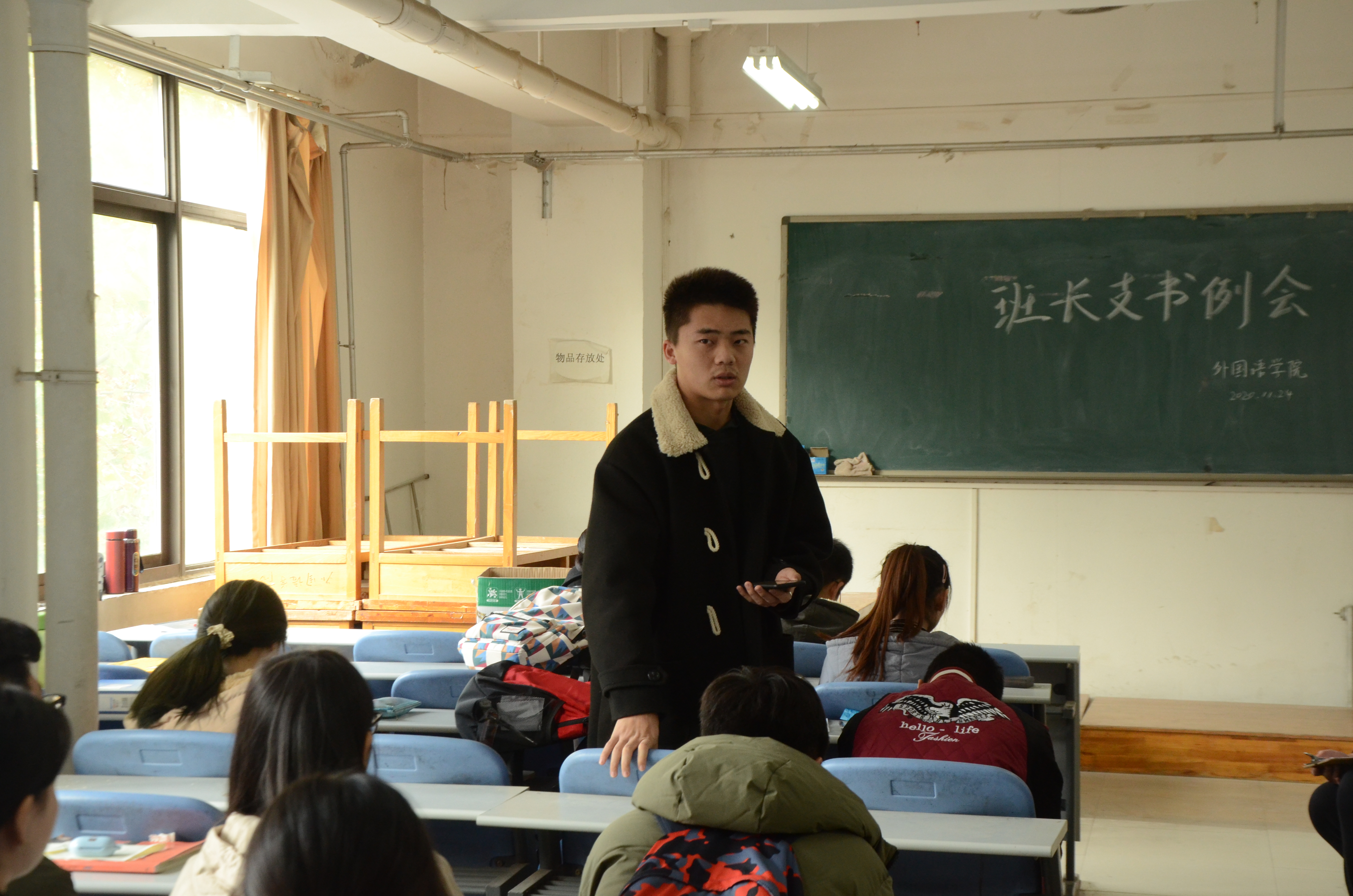 于龙子湖校区海棠园202自习室举办本学期第九次班长支书例会。团委书记李沛携主要学生干部及各班班长支书出席本次会议。