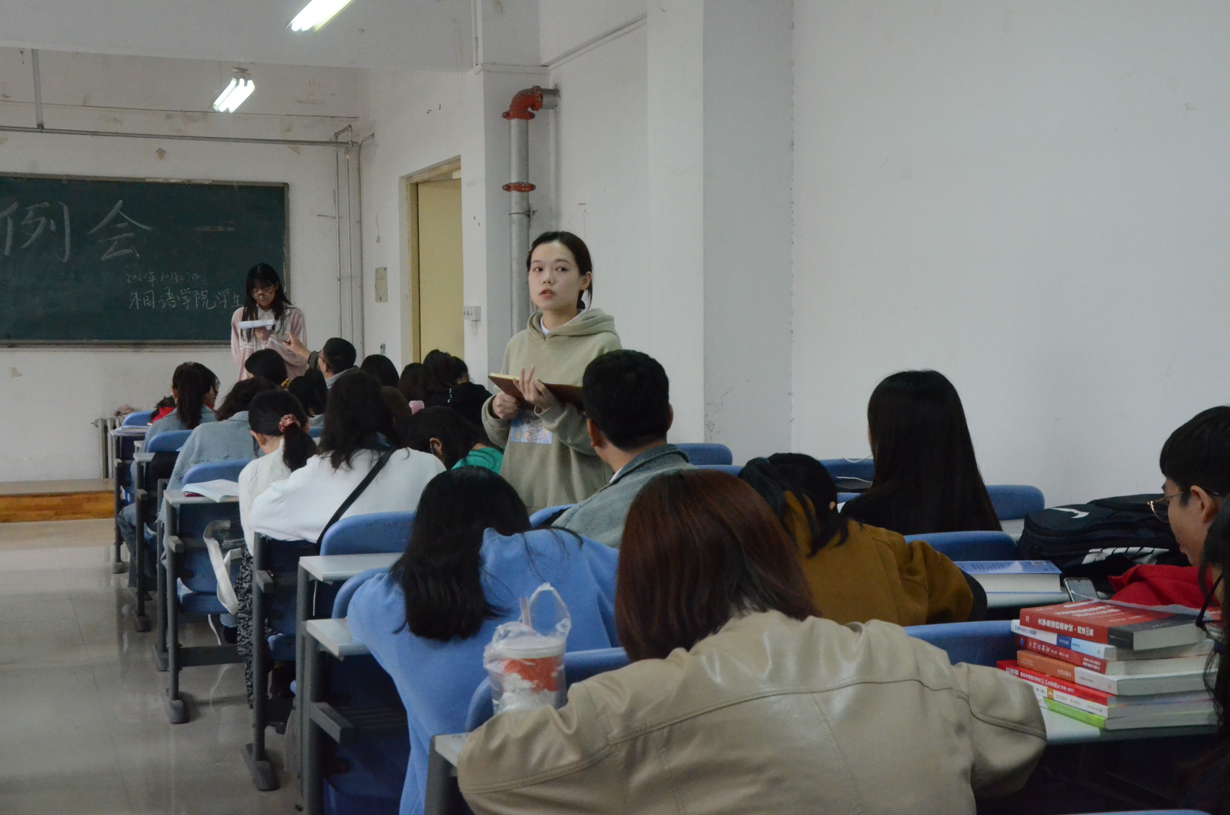 会议伊始,团委办公室负责人首先对过去一周团办工作进行总结。她指出,团日活动是班级评优评先的重要指标,希望各班团支书认真组织策划,提高团日活动的质量;接下来,团委宣传部负责人介绍了“新闻采编大赛”、“我和我的家乡”等作品征集活动的细则,并着重强调了投稿作品的质量问题;此外,勤工部负责人对刚刚结束的奖助学金评选工作进行了总结,并指出了评选工作中存在的问题;最后,心理咨询站负责人传达了即将举行的心理趣味运动会的有关通知并呼吁各班长支书积极动员班级同学参加。