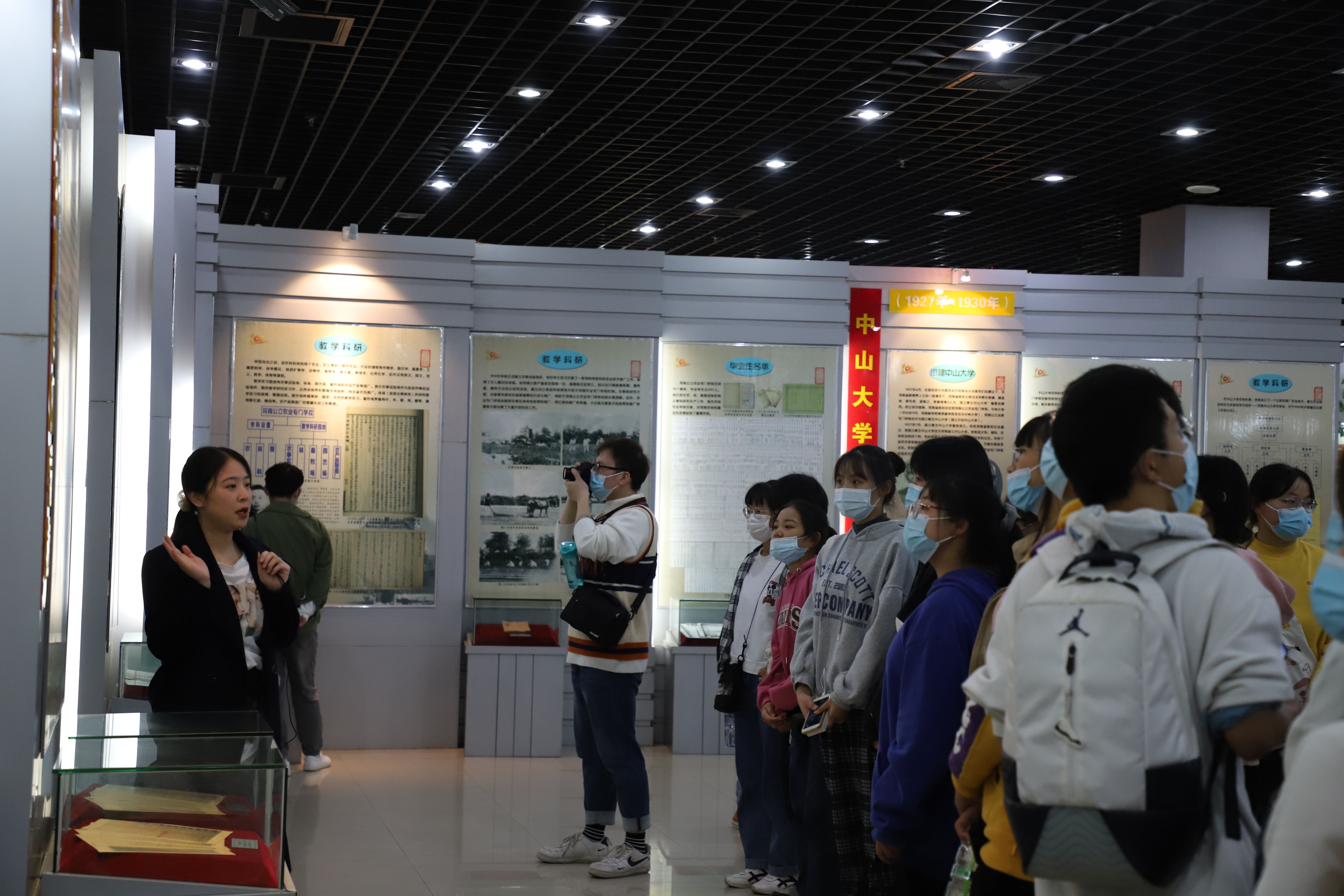 师生首先来到了河南省博物院。在古色古香的文物中,大家感受着中原石器时代、夏商周春秋战国时期等历朝各代浓厚的中原文化气息。其中,云纹铜禁、妇好方尊、龙首双耳簋、三彩骆驼等文物工艺精湛复杂,令大家叹为观止,也参观学生们感受到了中原文化的博大精深。随后,大家前往农大校史馆进行参观学习。在百年农大展厅前,校史馆志愿者讲解员借着一幅幅满载着创业艰辛的图片、一件件镌刻着弘农报国意念的展品和一块块饱含着波澜壮阔历史的展板,带领大家一起抚今追昔,一起了解一代代农大人薪火相传、矢志不渝的奋斗故事,让大家了解了我校百年历史的变迁与发展,并深刻感受到了农大人凝聚起来的农大精神。