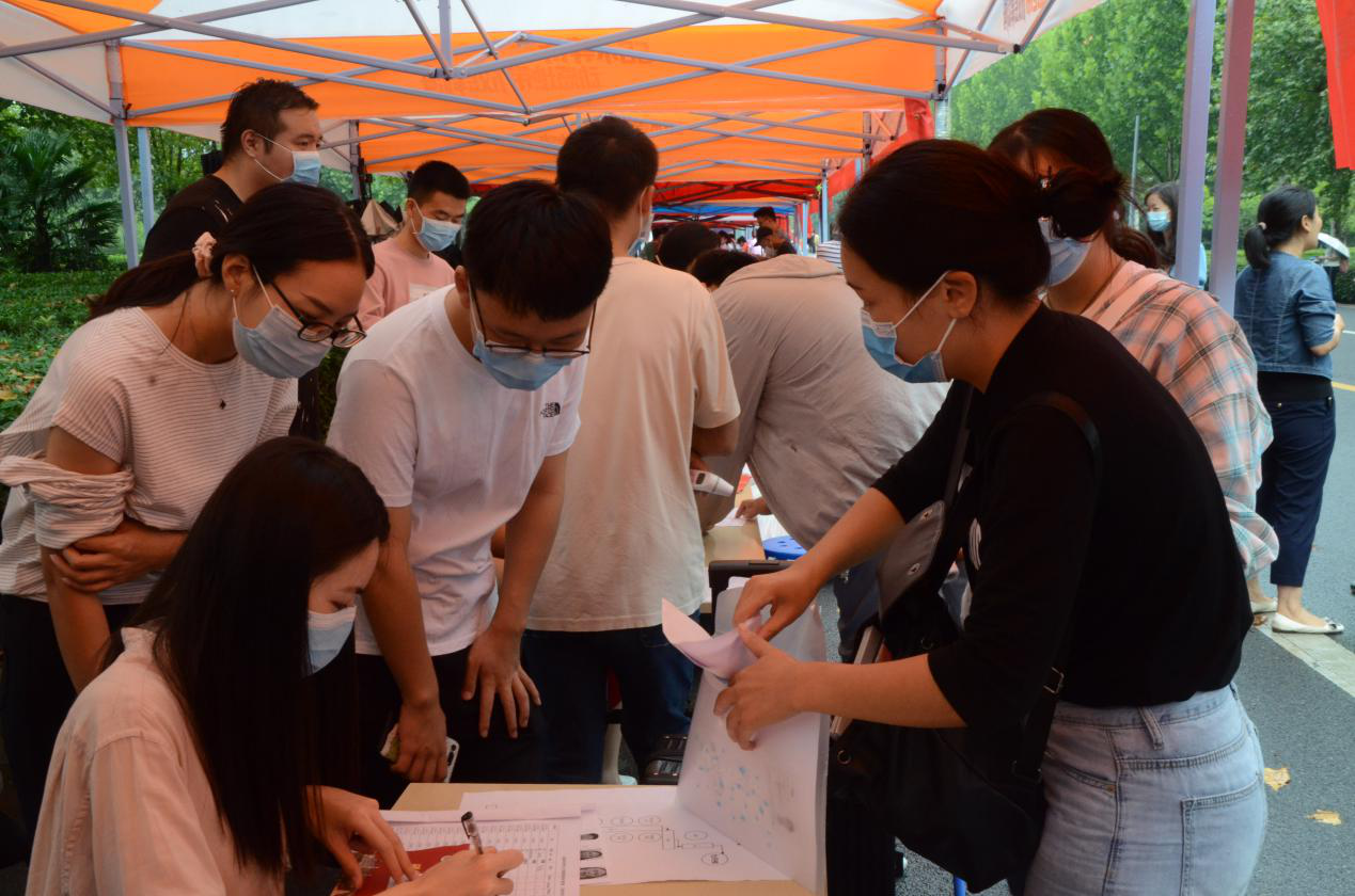 志愿者和老师们在岗位上热情细心地引导新生完成报到流程,并耐心地介绍疫情期间哔咔漫画